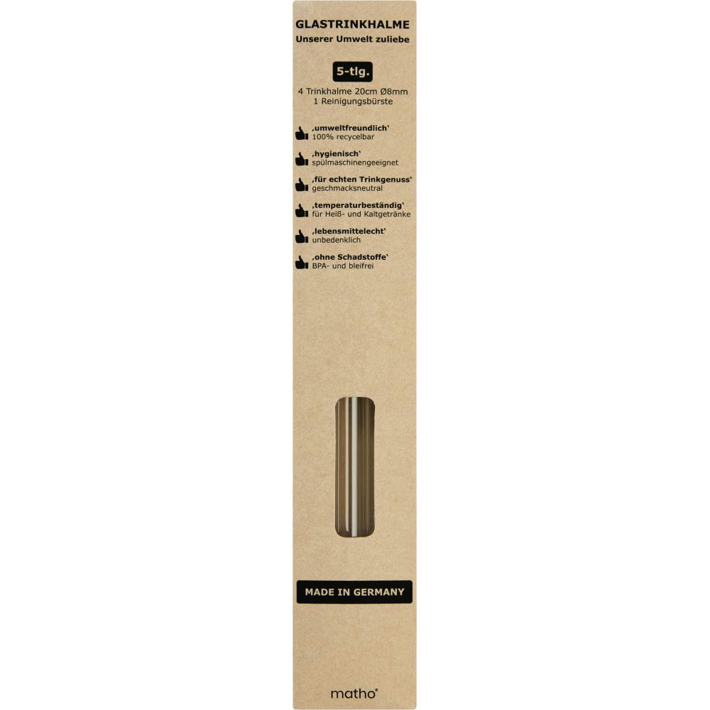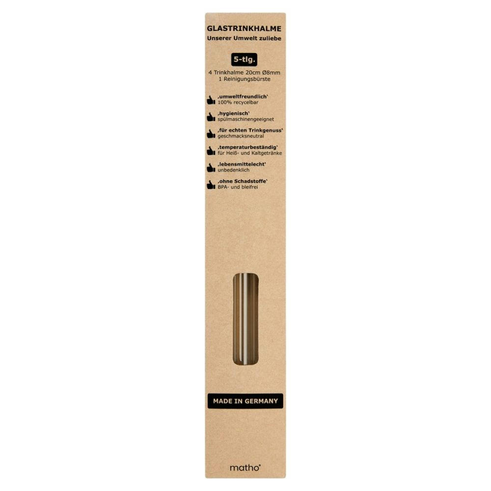 Umweltschutz beginnt im Kleinen: wiederverwendbare Trinkhalme aus Glas sind ein wichtiger Beitrag! Die Halme sind 100 % recycelbar,spülmaschinengeeignet, geschmacksneutral und für Heiß- oder Kaltgetränke gleichermaßen geeignet.Lebensmittelecht, BPA- und bleifrei.