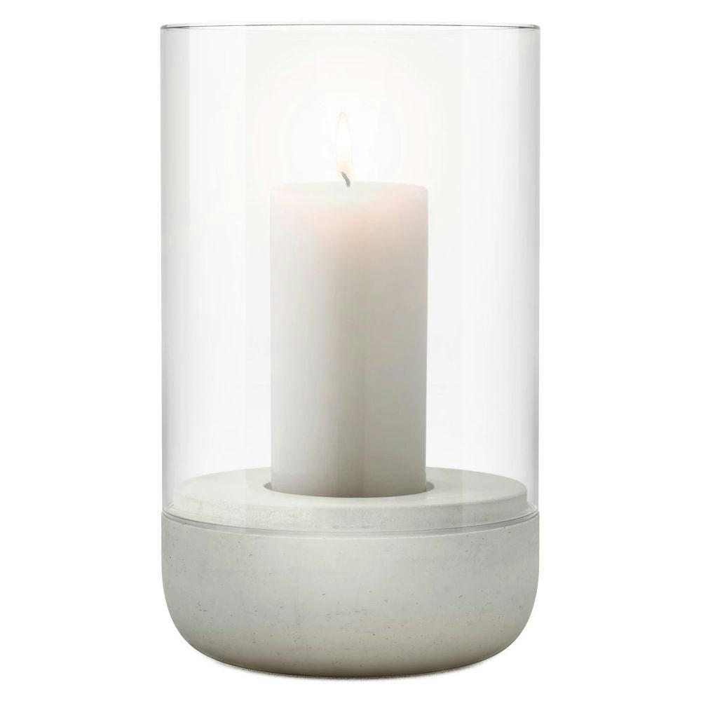 Material: Beton, Glas klar. Farbe: Beton. Maße:Ø 12 cm, Höhe 20 cm.