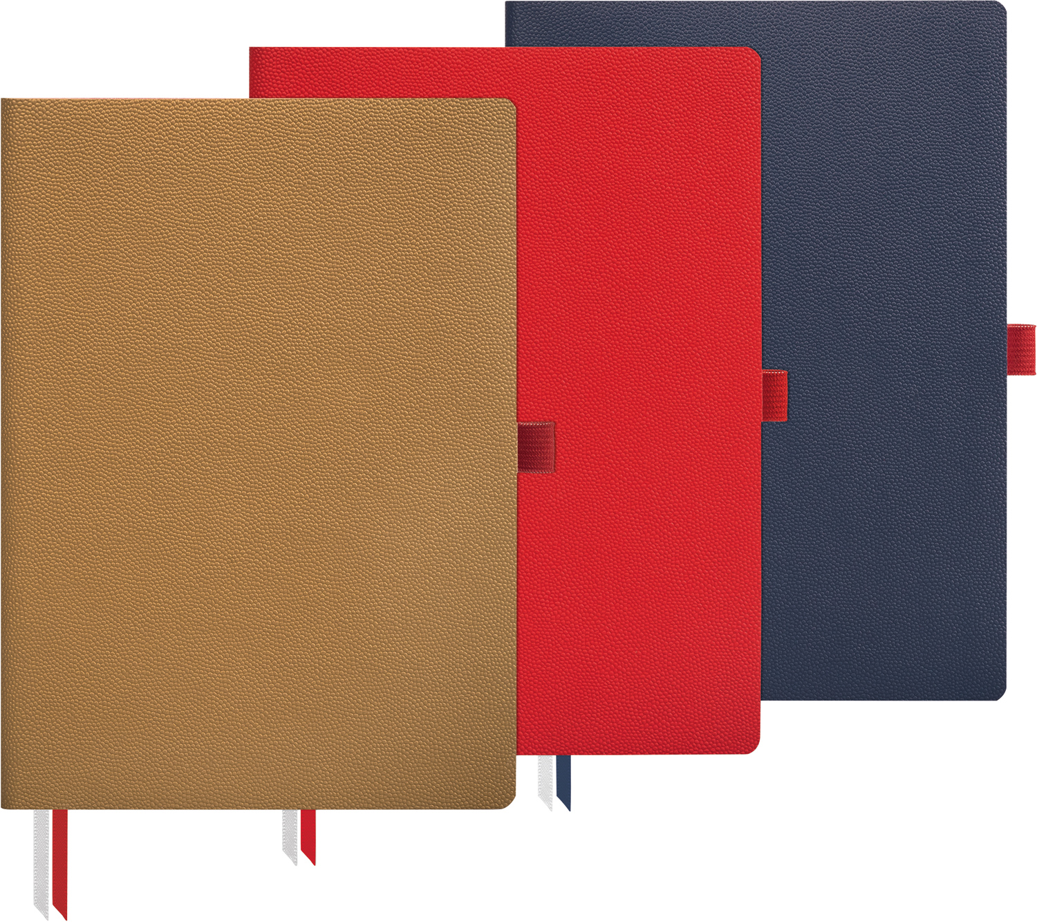 Notizbuch mit Einband aus Bucheinbandstoff in 3 Farben, 192 Seiten karierter Inhalt mit Umrandung und Kopfzeile und Perforation, Kapitalband, zwei Zeichenbänder, runde Ecken bei Inhalt und Einband.