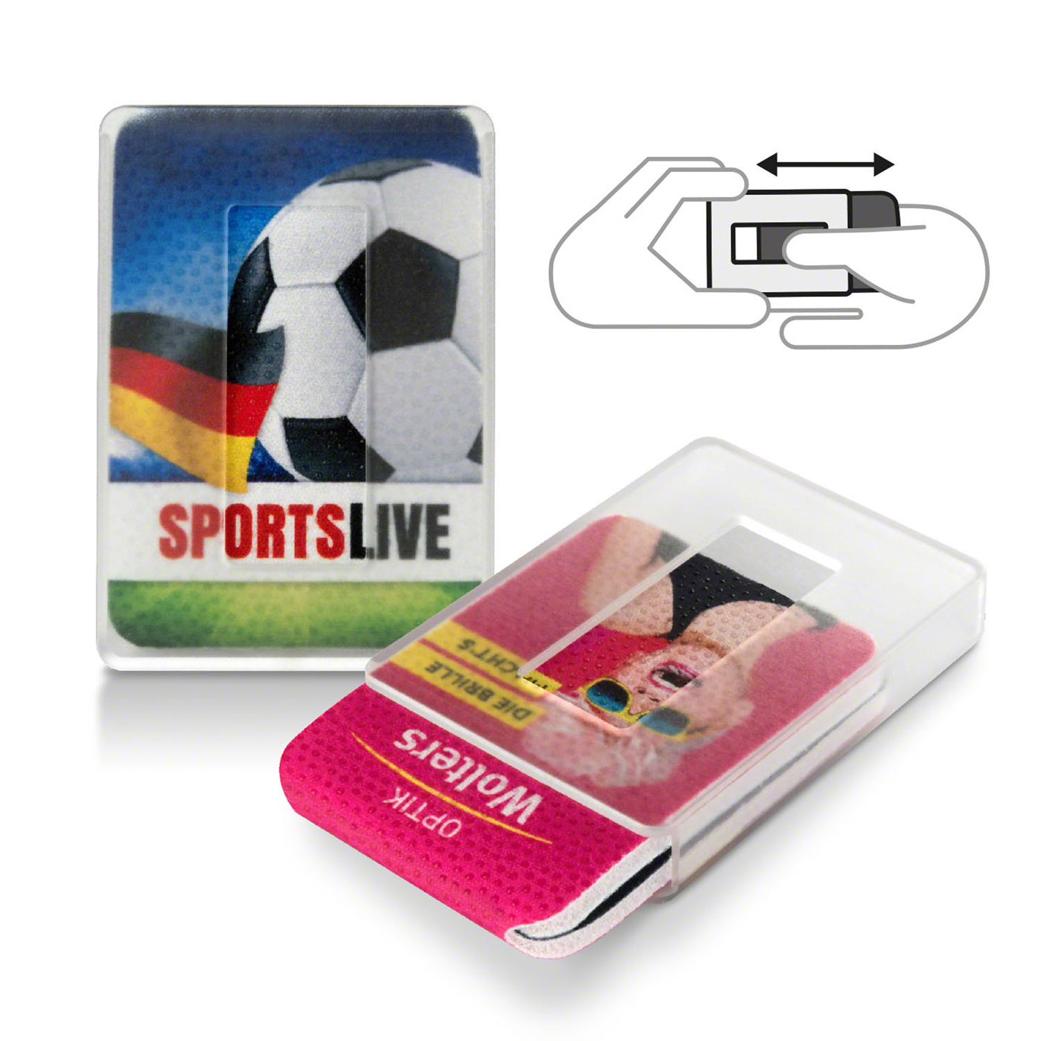 Die verarbeitete P-9000® Microfaser entfernt Fingerabdrücke und Schlieren äußerst effektiv. Feine Grip-Dots auf der Außenseite verhindern das Verrutschen der Finger. Der PocketCleaner® wird im kompakten Case inkl. individuellem, mehrfarbigen HD-Werbeaufdruck geliefert. Made in Germany. Preis inkl. 4/0 Druck sowie inkl. Druckvorlauf- und Versandkosten an eine Adresse in Deutschland auf dem Festland.