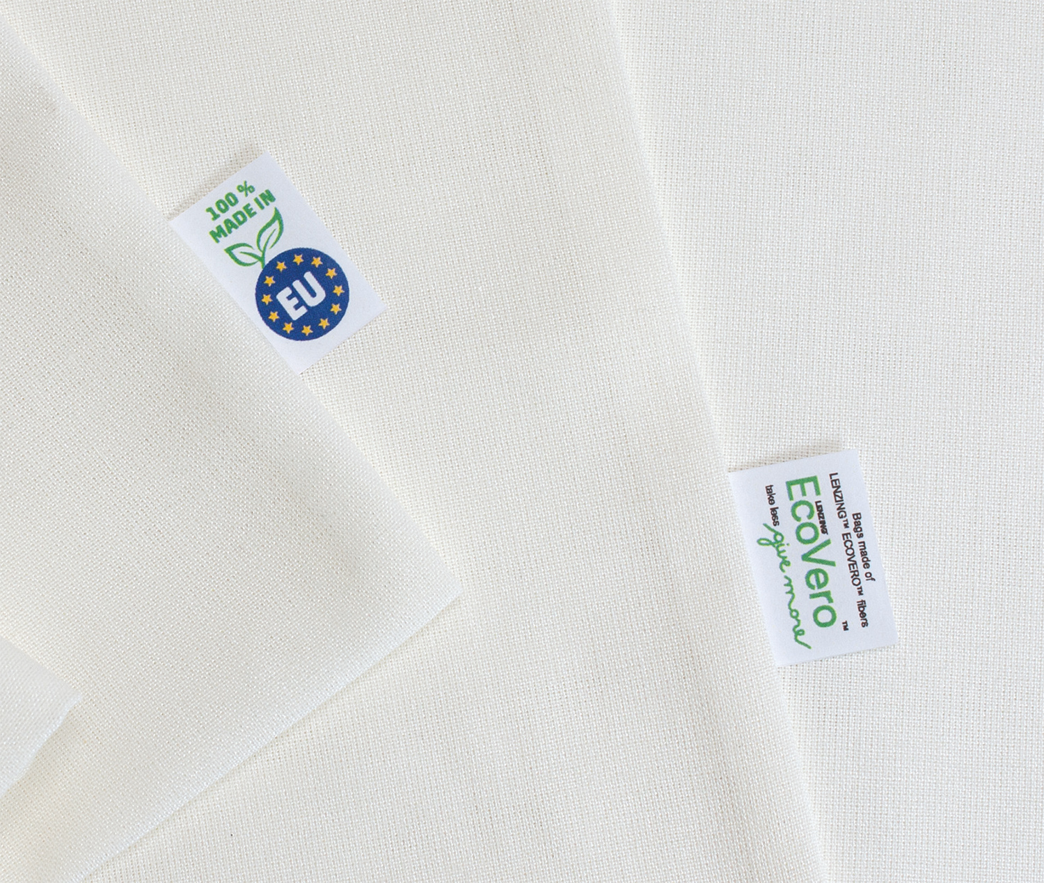 Das »Made in EU« Produkt besteht zu 100 % aus OEKO-TEX®-MADE IN GREEN zertifiziertem ECOVERO Holzfaser Gewebe das in Österreich produziert wird. 170 g/m², auch mit langen Henkeln lieferbar.