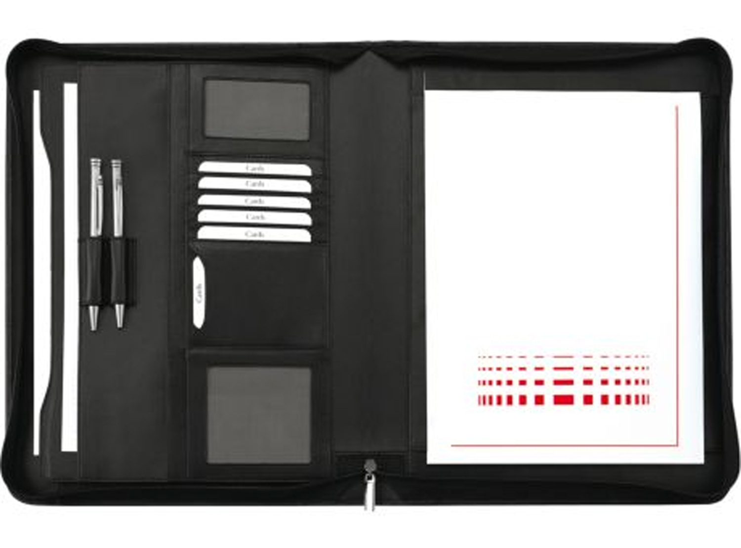 Steck- und Kartenfächer, Faltenfach, Stiftschlaufen,