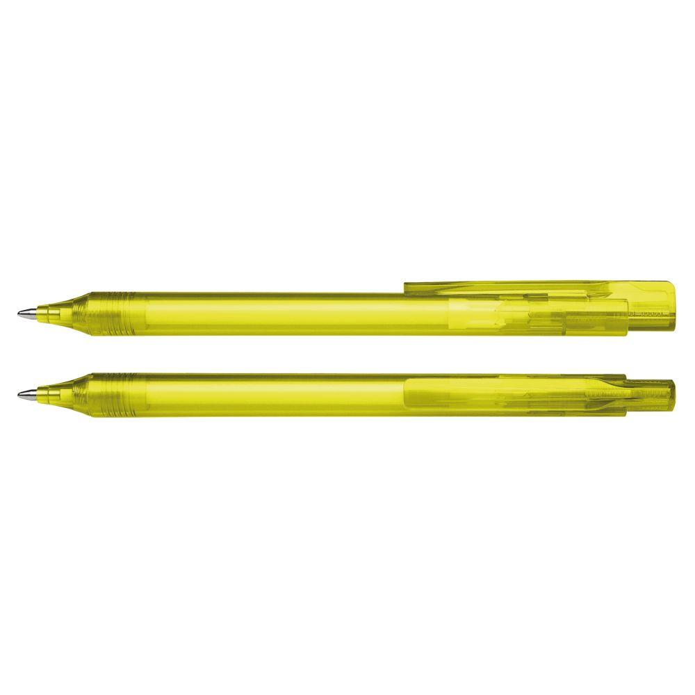 Druckkugelschreiber aus transparentem oder opakem Kunststoff mit glänzender Oberfläche. Ausgestattet mit Schneider-Mine 774 M. Produkt mit finanziellem Klimabeitrag: Kompensation in Höhe der unvermeidbaren Emissionen in ein zertifiziertes Klimaschutzprojekt. Gehäuse: glasklar-transparent. Schreibfarbe: blau.