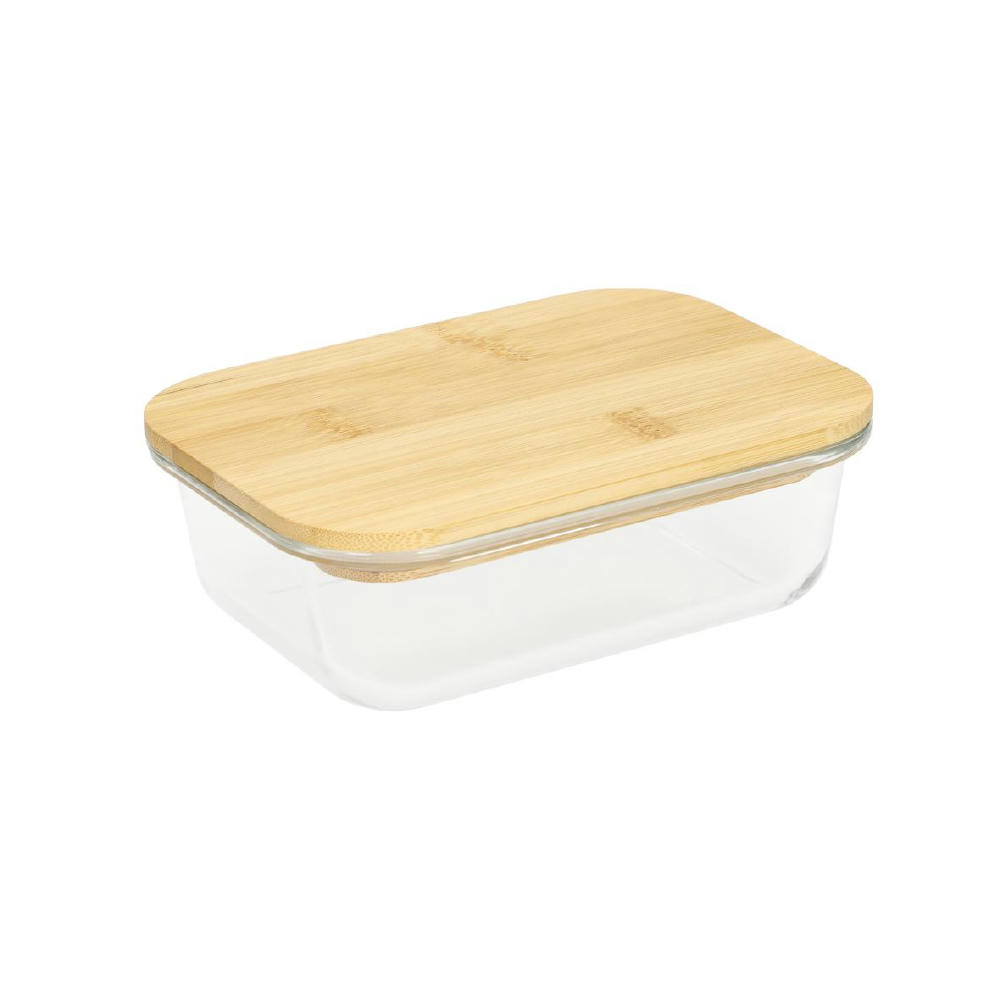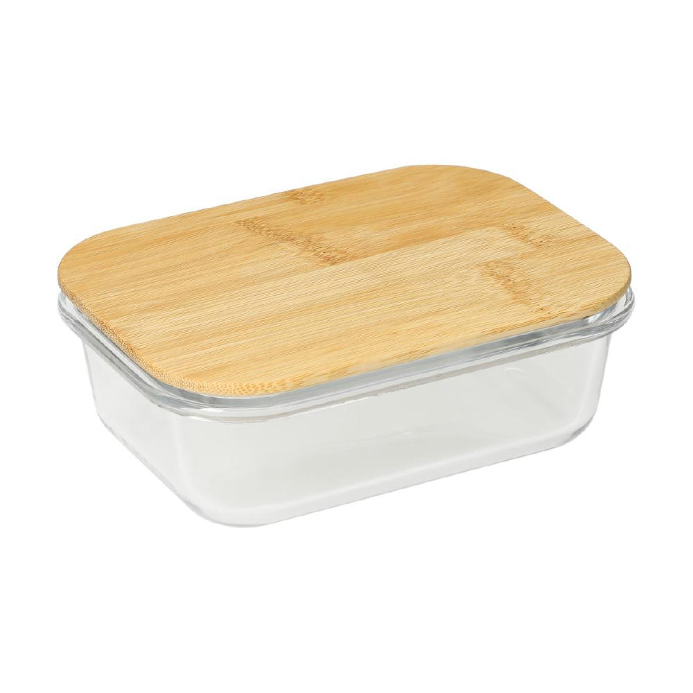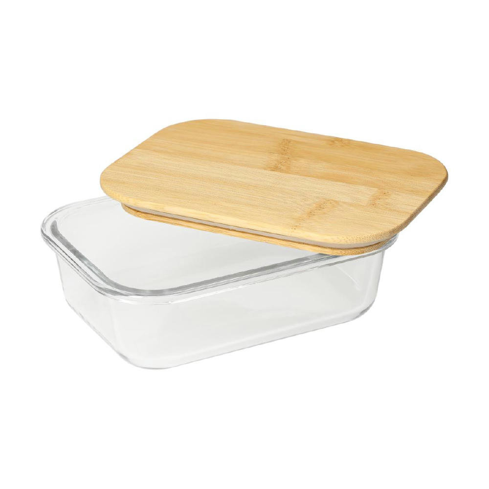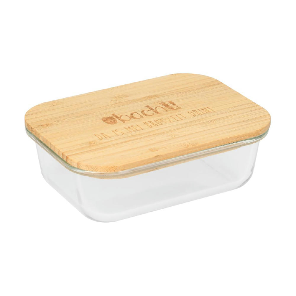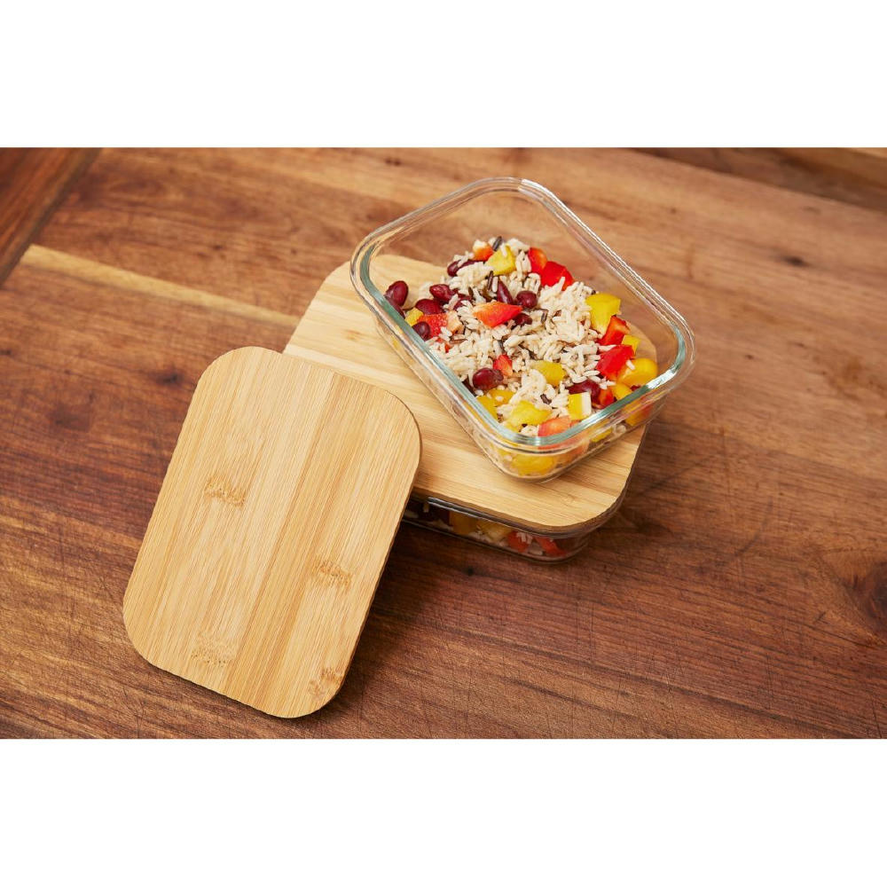 Schale aus hochwertigem und hitzebeständigem Borosilikat-Glas. Der Deckel aus Bambus verfügt über einen Silikonring. Mikrowellengeeignet.