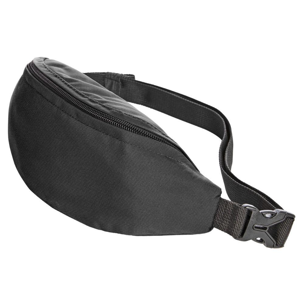 leichte Sling-Bag; RPET-Obermaterial; Reißverschluss-Hauptfach; Reißverschluss-Fach rückseitig; längenverstellbarer, seitlich zu schließender Bauchgurt mit elastischer Lasche