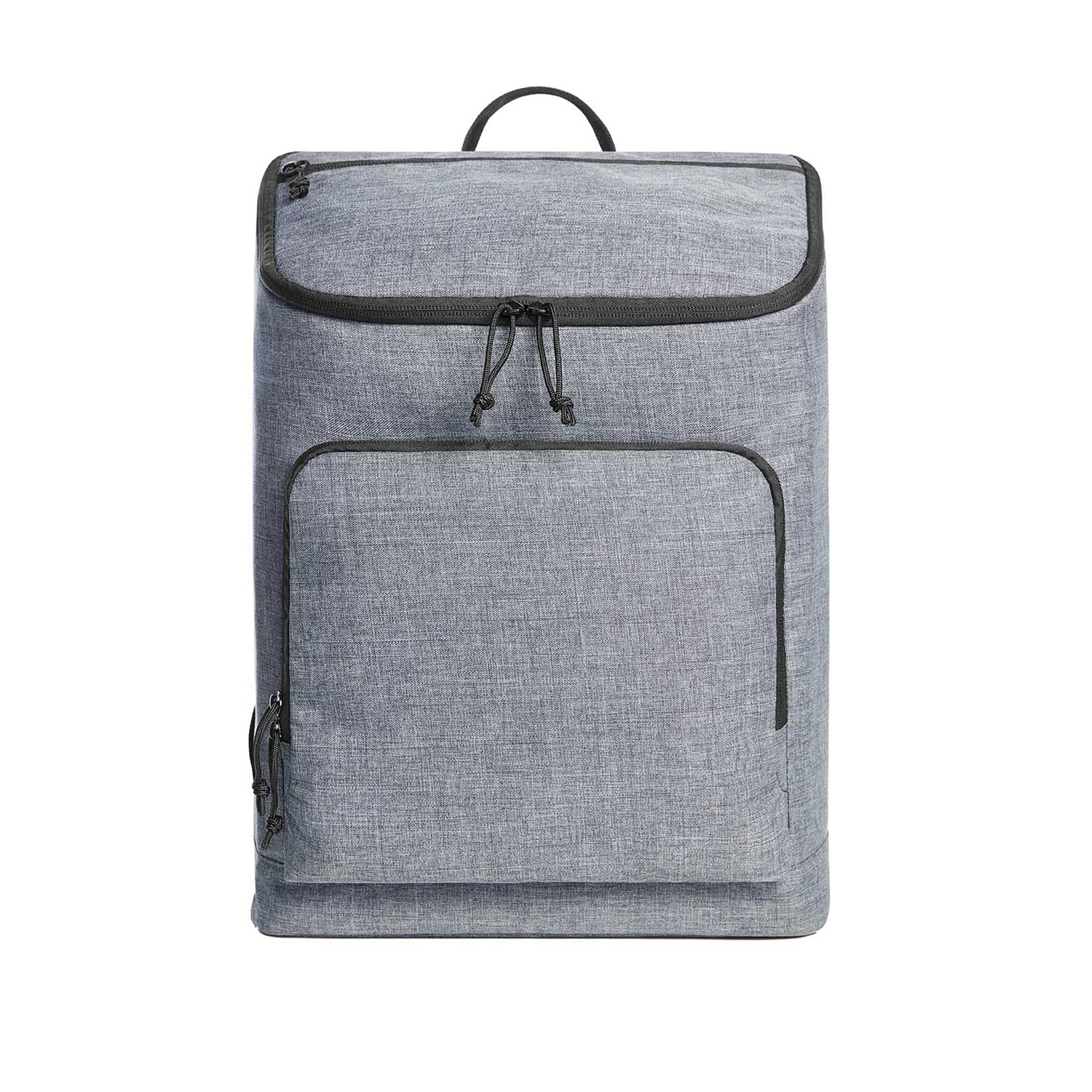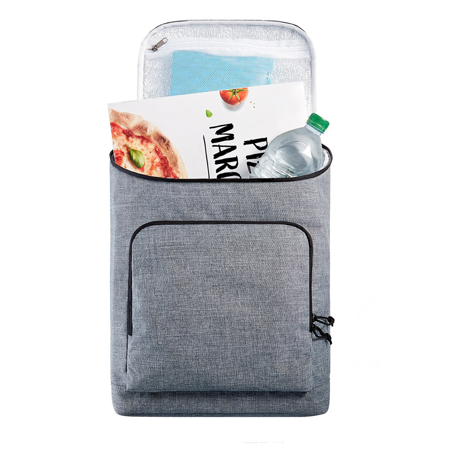 Deckel mit dreiseitig umlaufendem 2-Wege-Reißverschluss - ideal zum Befüllen; großes Hauptfach; Reißverschluss-Netzfach für Kühl-Akkus innen; außen Deckel-Reißverschlussfach; große Vortasche mit 2-Wege-Reißverschluss; gepolsterter Rücken; gepolsterte, längenverstellbare Schultergurte; Handgriff.