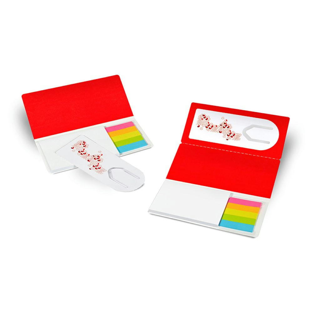 Diese Variante zum klassischen Haftset wird durch eine weitere Seite ergänzt, die ein praktisches Lesezeichen beinhaltet. Eine große Haftnotiz und ein Markerset machen das Produkt zu einem richtigen Eyecatcher.