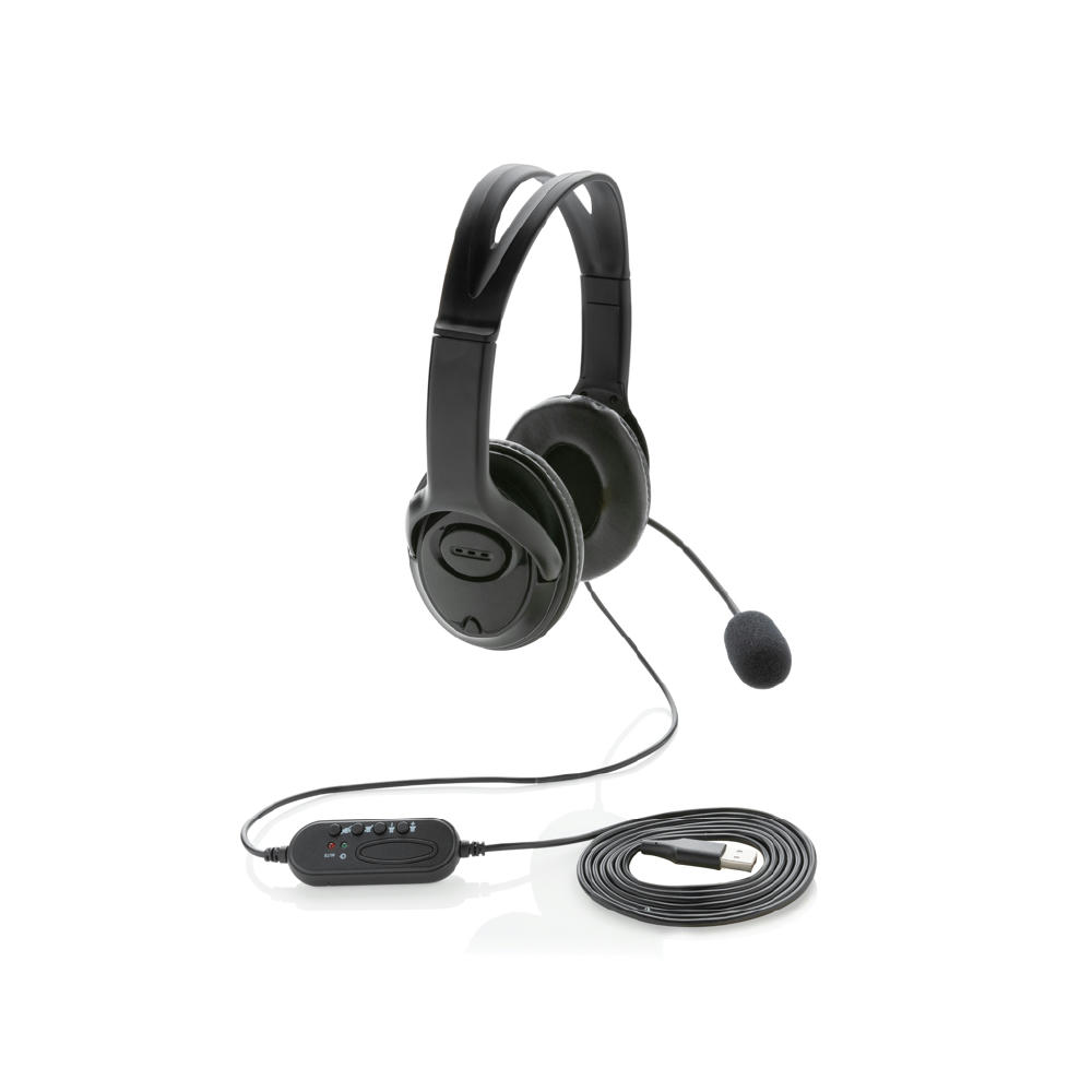 USB-Stereo-Headset mit Inline-Soundkarte und Lautstärkeregelung liefert einen Stereoklang der Superlative, während das Mikrofon für klare Gespräche sorgt. Dieses leichte Over-Ear-Headset aus ABS-Material ist mit PC und Mac® kompatibel. Mit 2 Meter USB A-Kabel.