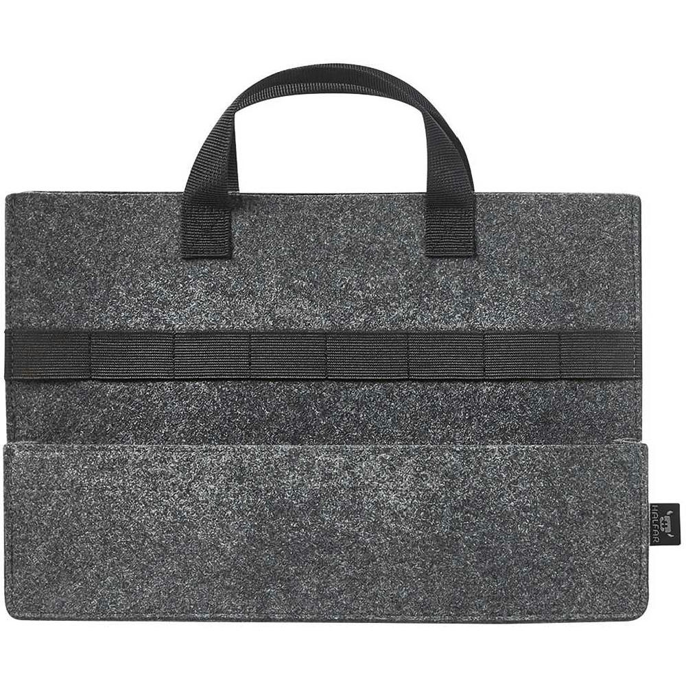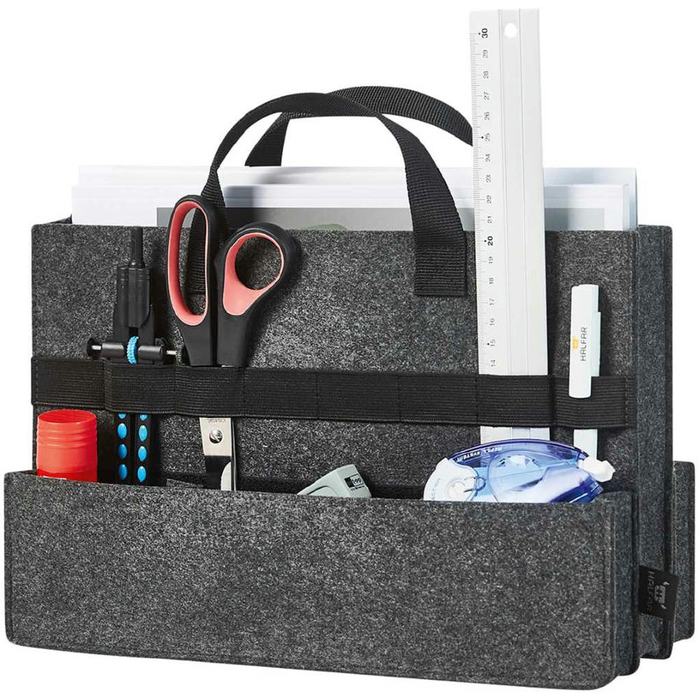 praktisches Inlay; Hauptfach passend für A4 Unterlagen; zwei Fächer mit Tiefe, davon eins mit individuell einstellbarer Separation; praktische, elastische Fixierschlaufen; Handgriffe