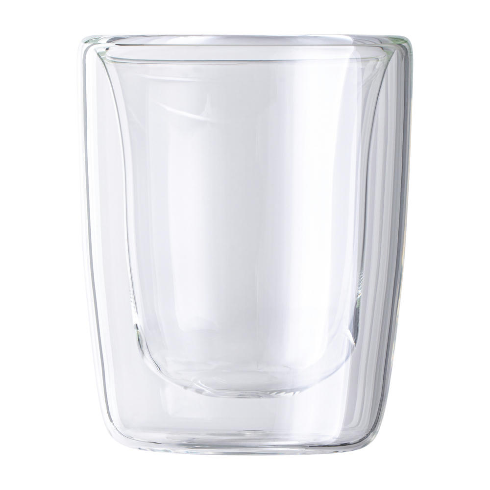 Das 2er Set beinhaltet zwei doppelwandige Espressobecher aus Borosilikatglas. Das hochwertige Material gewährleistet eine hervorragende Hitzebeständigkeit. Die praktische, doppelwandige Konstruktion hält den Kaffee für längere Zeit warm und schützt gleichzeitig die Hände.