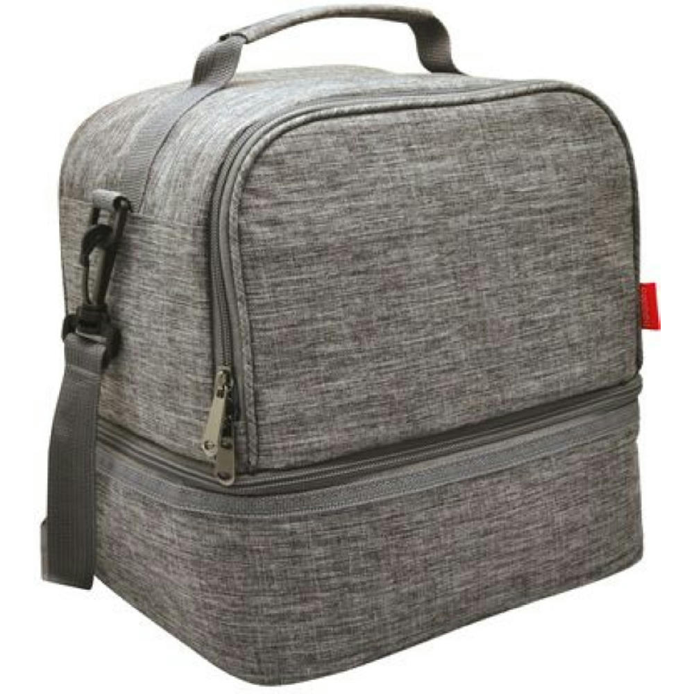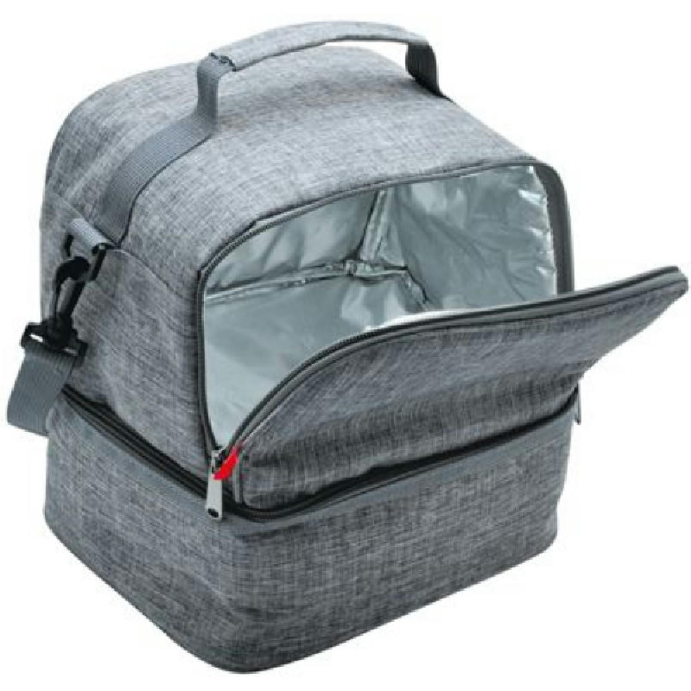 Thermotasche mit doppeltem Fach, isolierende 3 mm dicke Auskleidung, Schultergurt, Möglichkeit eine Visitenkarte einzufügen, verstärkte und gepolsterte Griffe für einen besseren Halt, Reißverschluss.