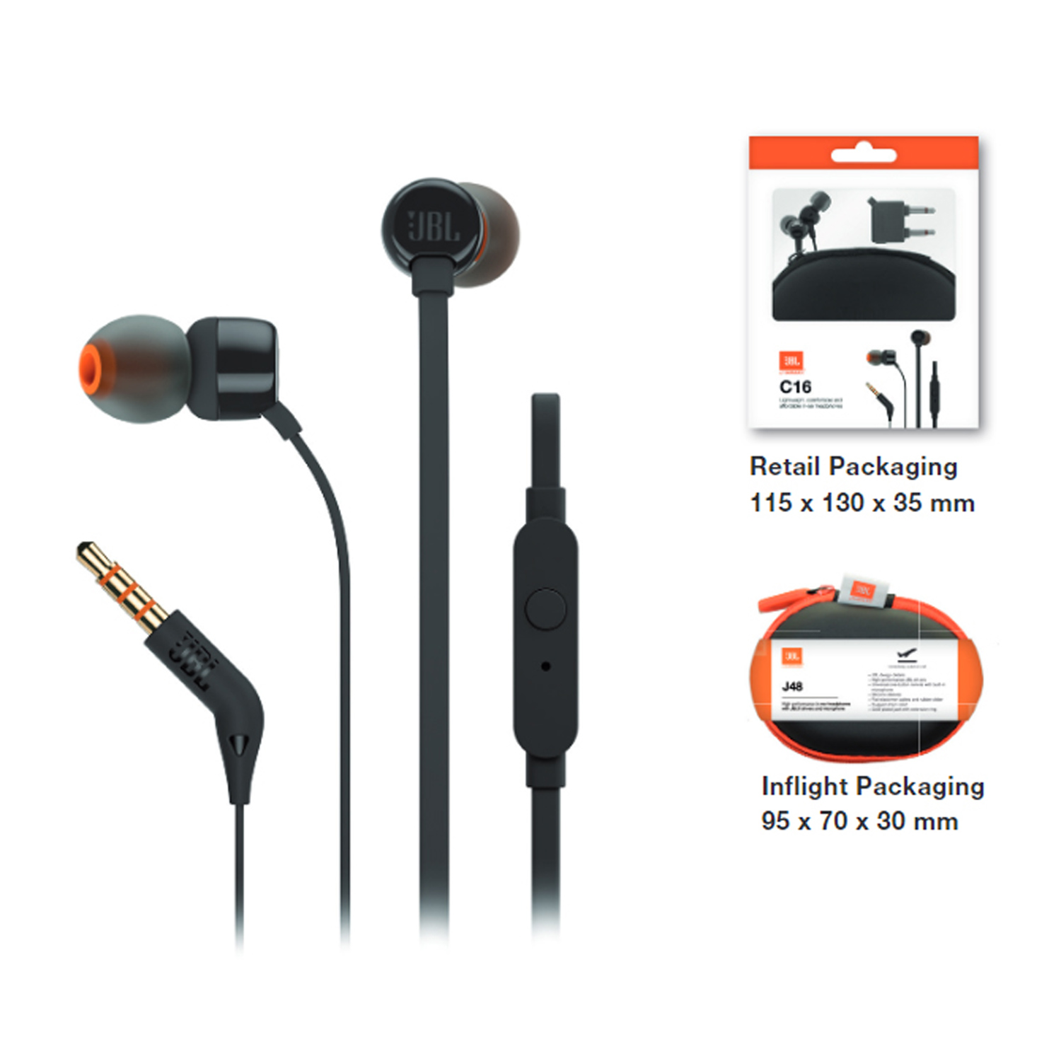 Leichte In-Ear-Kopfhörer mit Mikrofon *Sound in JBL-Qualität *Eingebaute Fernbedienung / Mikrofon *Einzelhandelsverpackung *Inflight-Verpackung.