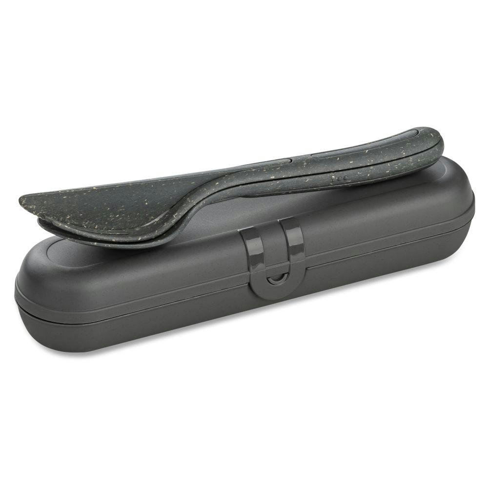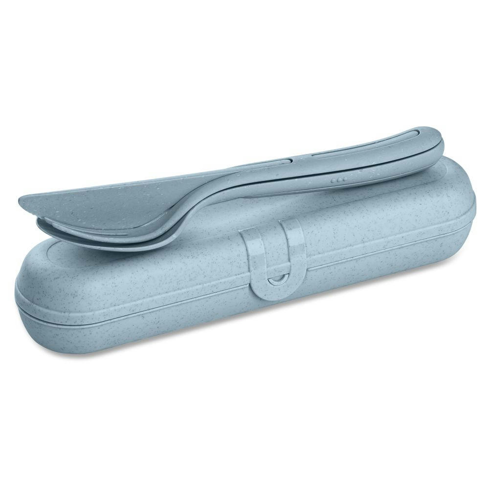 Das Dreamteam für unterwegs. Das KLIKK Besteckset kommt in einer schicken Box, mit der sich Messer, Gabel und Löffel sicher und sauber von A nach B transportieren lassen. Auch nach der Mahlzeit sind hier alle Besteckteile hygienisch verstaut. Die schlanke Box hat einen praktischen Clipverschluss und findet in jeder Tasche Platz.