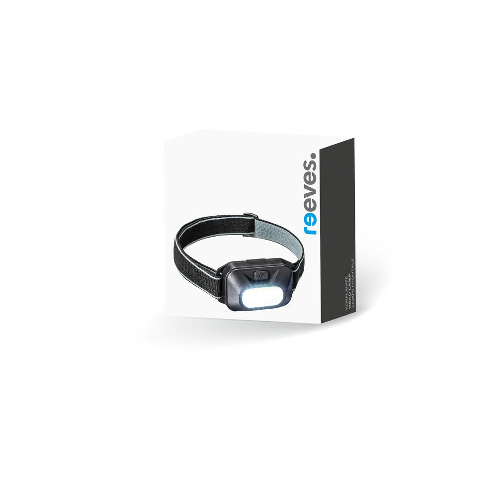 Praktische Kopflampe mit COB-Technologie (max. 90 Lumen, 2 Watt). Das sehr helle Licht lässt sich eine Stufe herunterdimmen und auf Blinken umstellen. Inkl. Batterie.