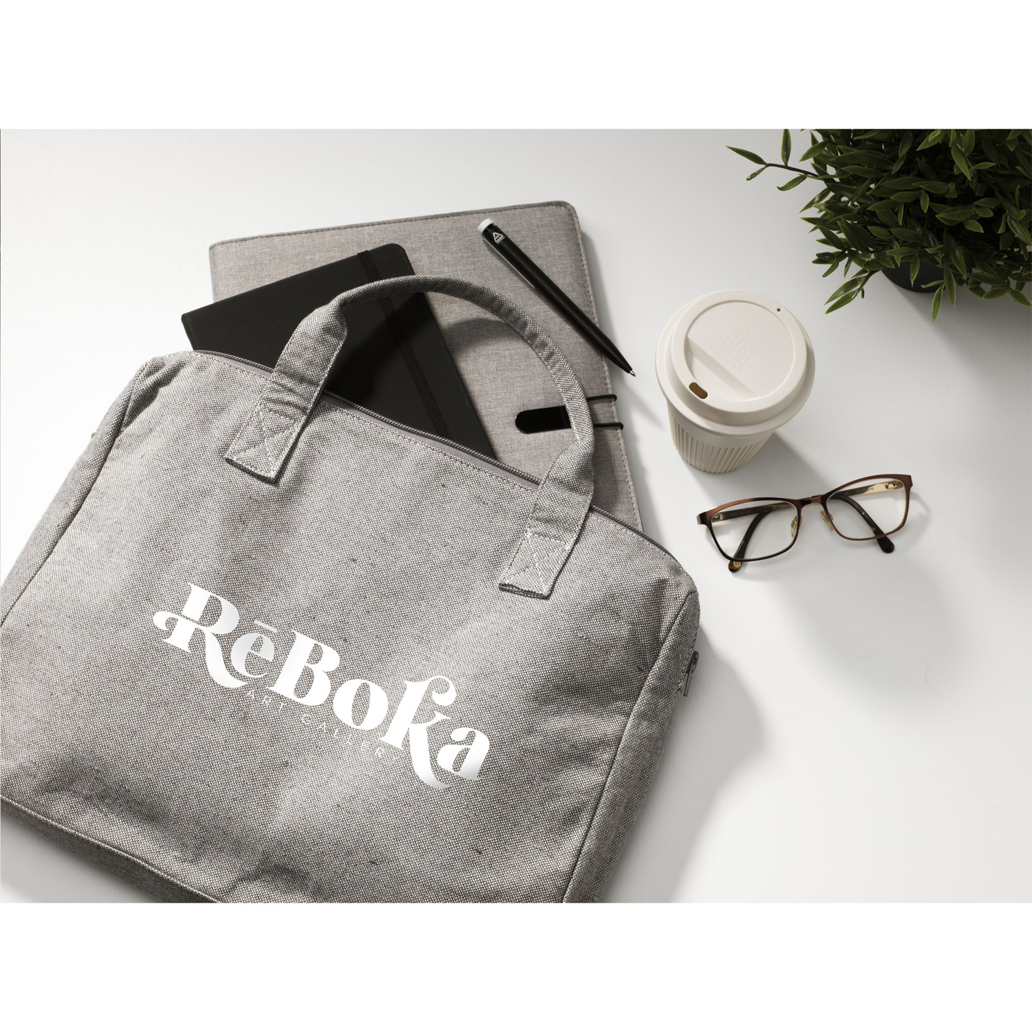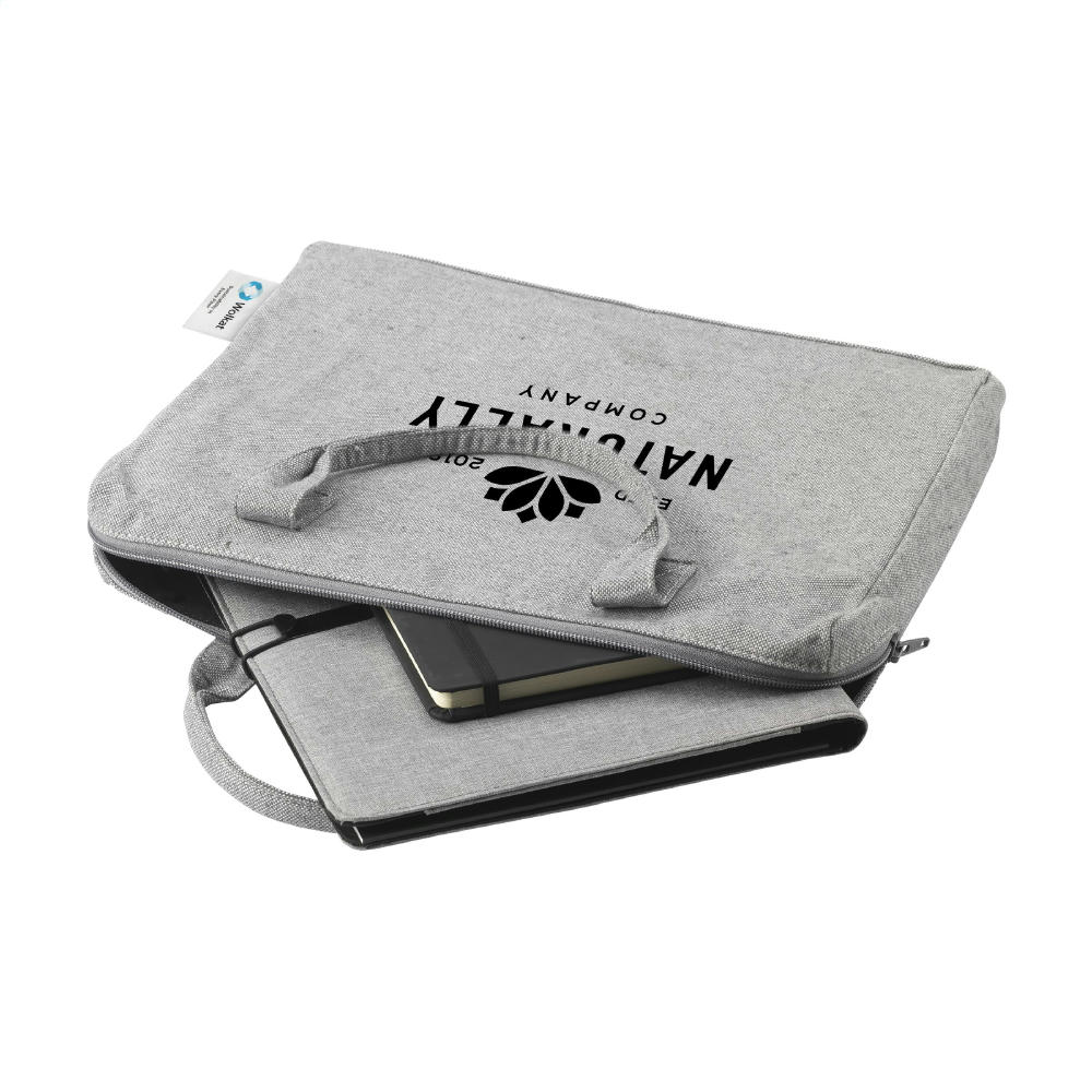 Nachhaltige geräumige Laptoptasche, hergestellt aus alten, ausrangierten Kleidungsstücken. Während des gesamten Textil-Recyclingprozesses werden weder Wasser noch Farbstoffe oder Chemikalien verwendet. Geeignet für den Transport eines Laptops bis zu 15,6 Zoll. Ausgestattet mit einem Reißverschluss, zwei verstärkten Griffen und einem verstärkten Boden. Sorgfältig verarbeitet mit einem Innenfutter und einem zusätzlichen Reißverschlussfach auf der Innenseite.