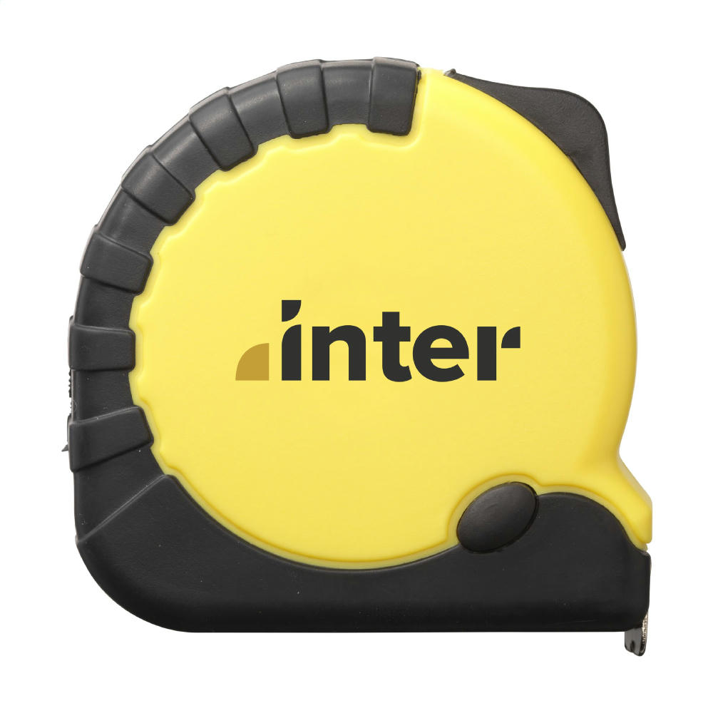 WoW! Bandmaß aus recyceltem ABS-Kunststoff. Mit Hartstahlband (Bandbreite 19 mm), Anzeige in Zentimetern und Zoll, rutschfestem Gummigehäuse, Gürtelclip und Handschlaufe. Wird einzeln in einem Kraftkarton geliefert.