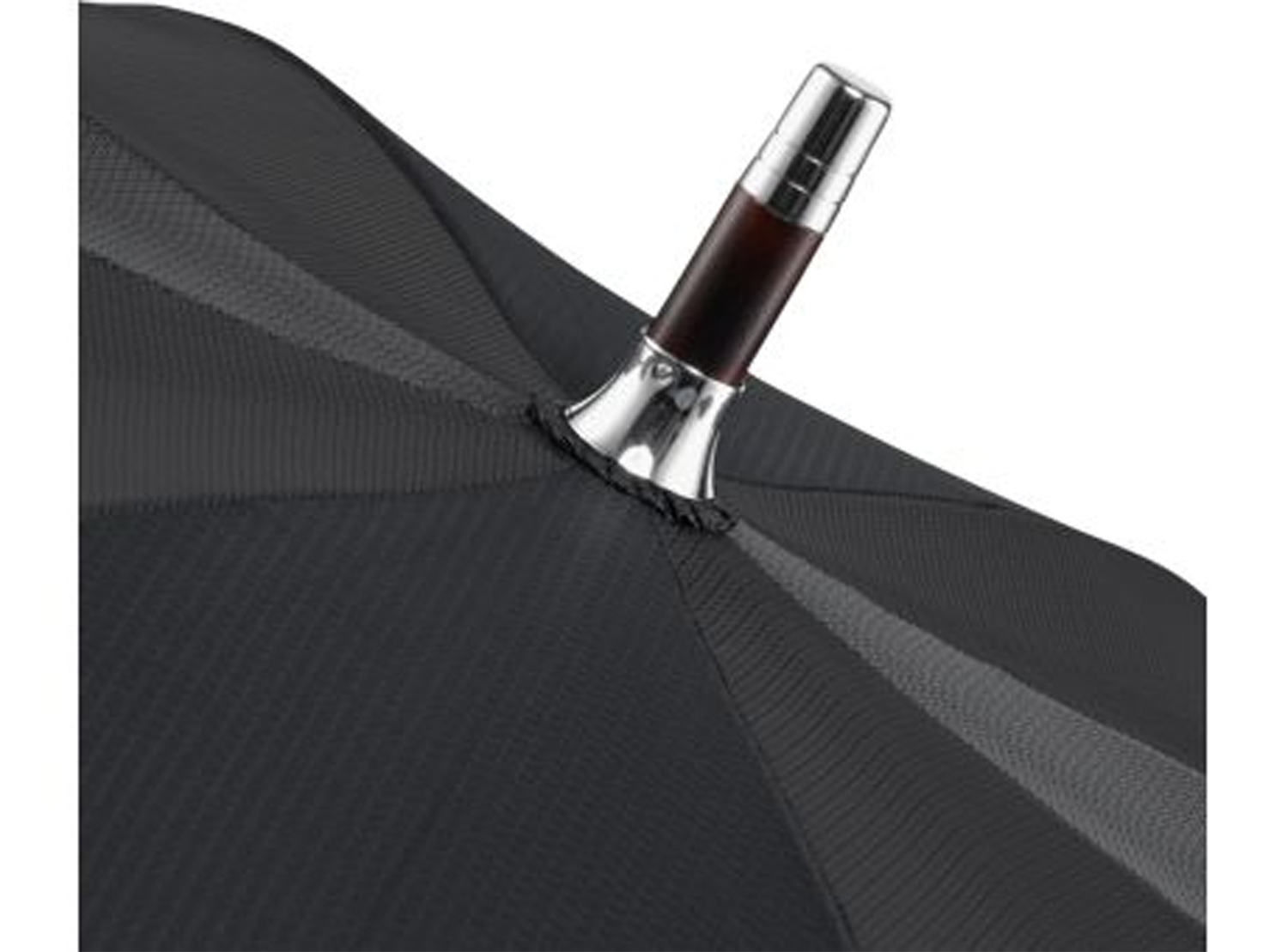 Hochwertiger Midsize-Schirm mit vielen Liebhaber-Details der klassischen Schirmmacherkunst und edlen glanzverchromten Elementen, Windproof-System, Handöffner, 65 cm/8-teilig, 16 mm Echtholzstock in geflammter Optik, Fiberglasschienen, gerader Griff in geflammtem Ahorn-Echtholz mit verchromten Applikationen und Doming-Möglichkeit, verchromte Schieber, Krone und Nickelspitzen, 71 % Polyester/29 % NylonFaconnéBezug mit Teflon behandelt (wasser- und schmutzabweisend), hochwertiges Futteral mit Paspelierung und breiter Öffnung.