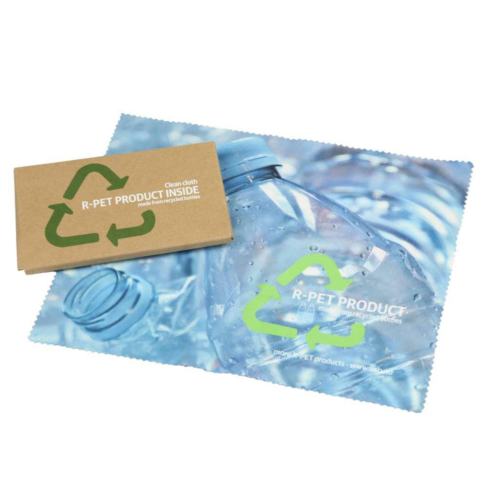 Hergestellt aus recycelten PET Flaschen. GRS zertifiziertes Mikrofaser-Reinigungstuch für Brillen, Handy, Laptop-, iPad oder TV-Displays. Einfaches Reinigen ohne zusätzlichen Einsatz von Reinigungsmitteln. Ein praktischer Helfer mit großer Werbefläche. Ideal für Mailings oder als Streuartikel.