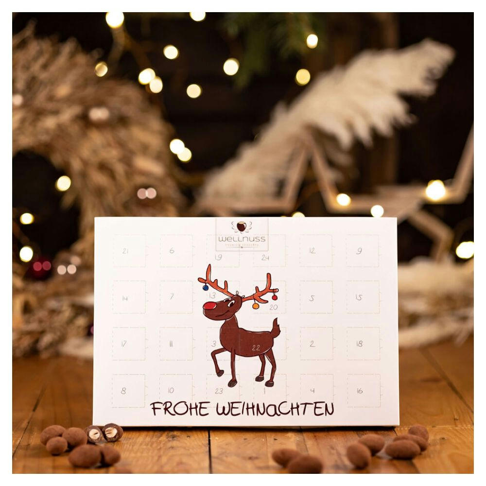 Gefüllt mit 24 Weihnachtspralinen in feinster Confiserie-Qualität in den Sorten Trüffelmandeln mit Kakao oder Haselnusskerne in Vollmilchschokolade mit Zimt. Nachhaltig durch Karton und kompostierbarem Inlay, Größe kompakt und portooptimierten (Maxibrief). Preis inkl. vollflächiger 4c-Druck auf der Kartonhülle.