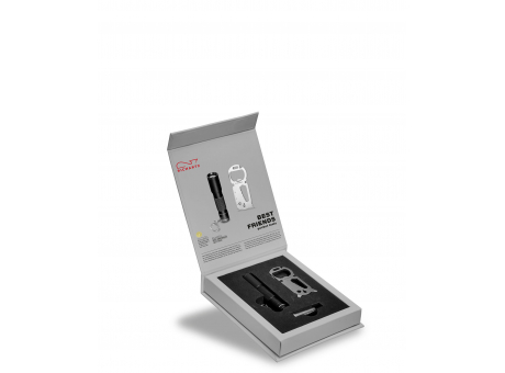 Zwei Produkte, die sich immer und überall nützlich machen: KEY TOOL 16+, das schlüsselgroße Multifunktionstool aus matt gestrahltem Edelstahl mit 16 Funktionen für den Schlüsselbund und die kompakte Taschenlampe LED LIGHT pocket aus Aluminium mit drei Leu