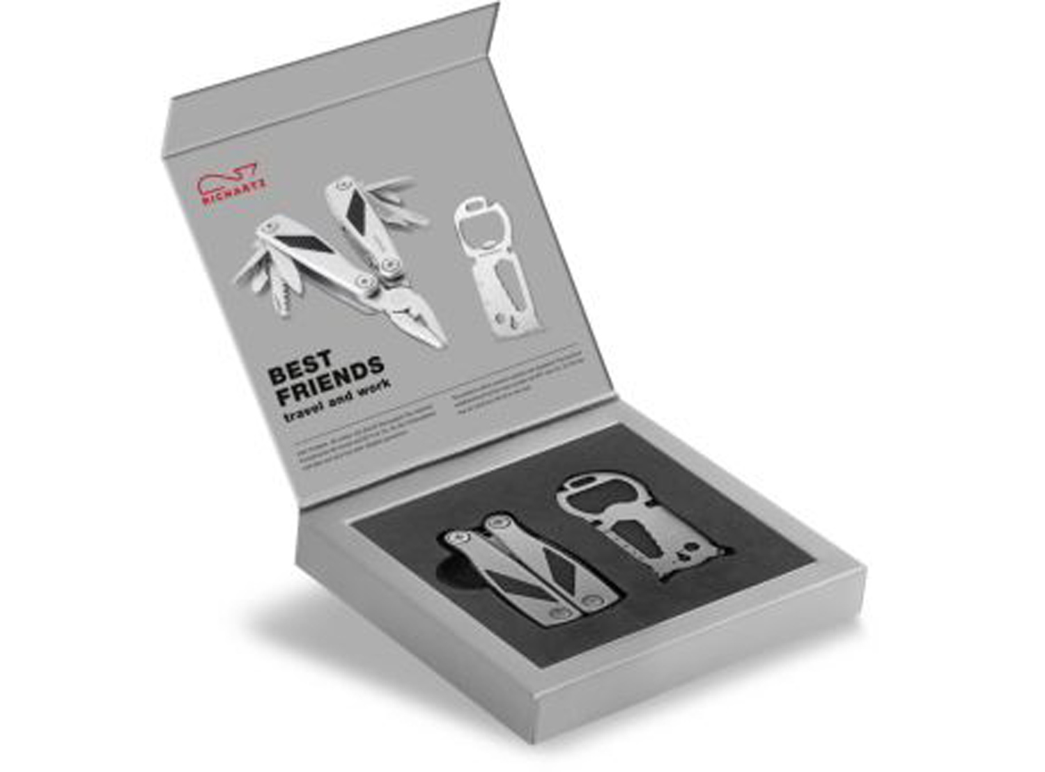 Zwei Produkte, die immer und überall überzeugen. GRIP tool pocket, das nützliche Pocket tool für die Tasche, und KEY tool 16+, das schlüsselgroße Tool mit 16 Funktionen für den Schlüsselbund, sind so klein und doch jeder Aufgabe gewachsen. Die gute Verarbeitung aus matt gestrahltem Edelstahl besticht. Ein Set, der jeden Tag Freude macht.