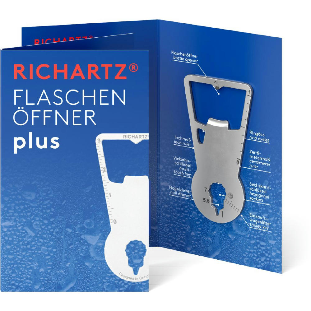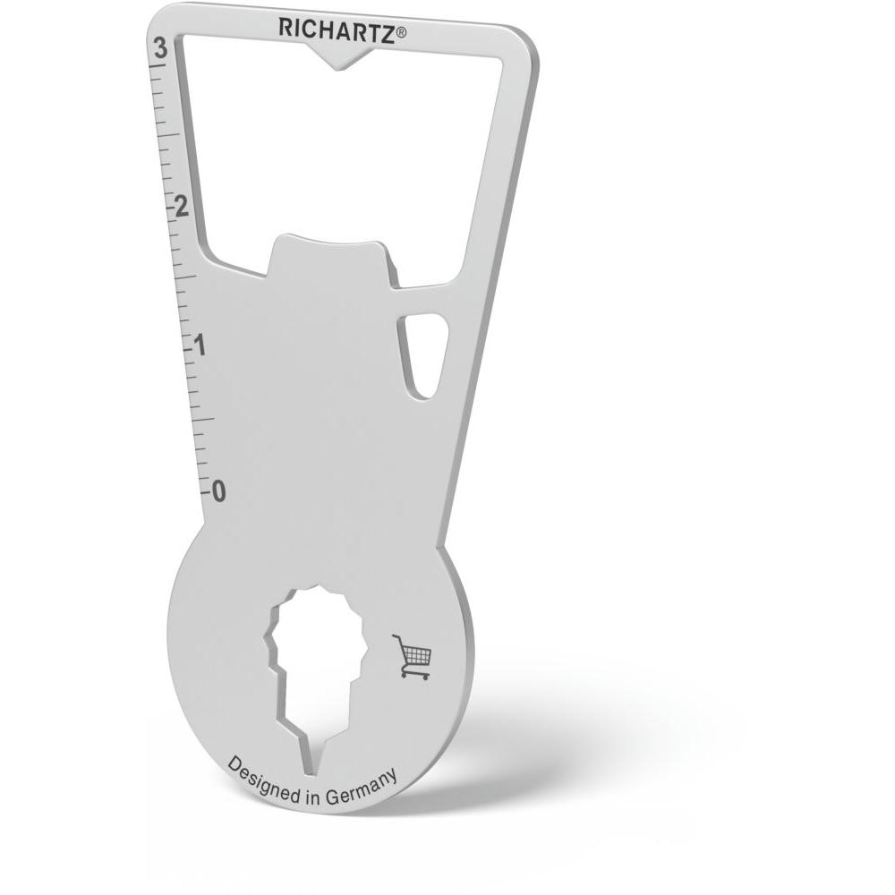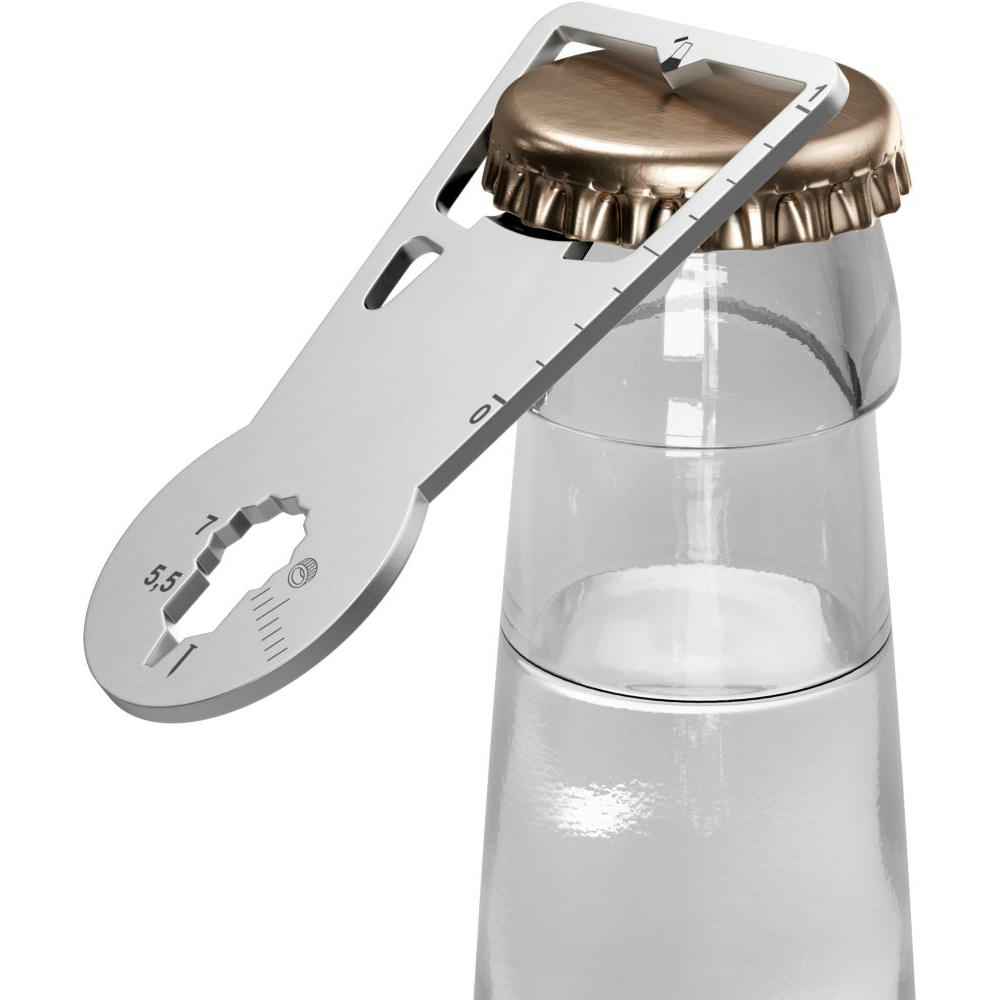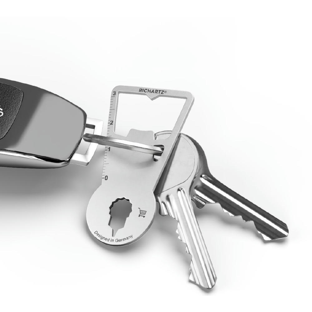 Überzeugt durch seine ultraflache, handliche Form und passt daher an jeden Schlüsselbund. Der perfekt konstruierte Flaschenöffner löst problemlos jeden Kronkorken und der Einkaufswagenlöser und 6 weitere Funktionen (Zentimetermaß, Inchmaß, Vielzahnschlüssel, Sechskantschlüssel, Nagelzieher, Ringöse) überzeugen jeden Tag!