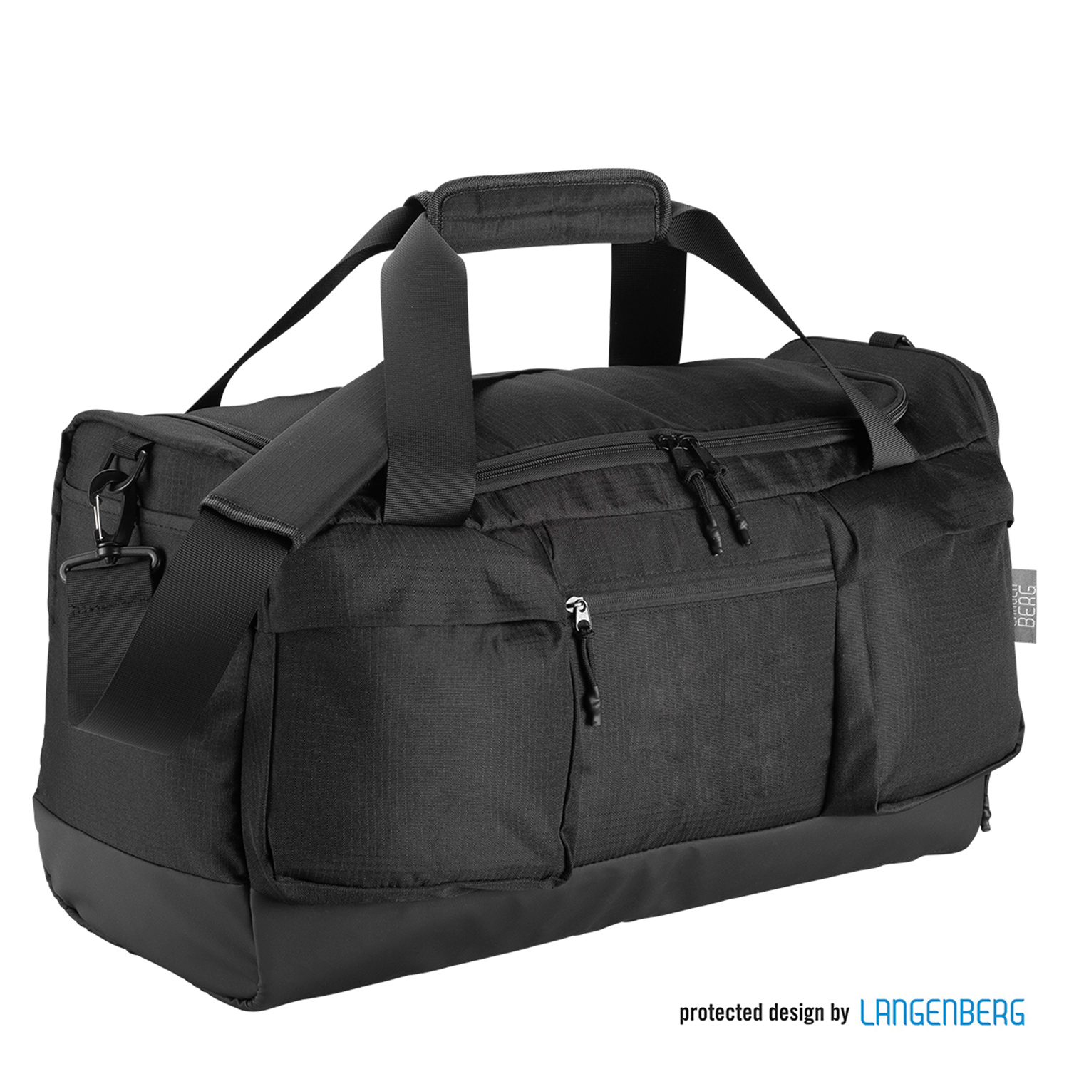 2-Wege Reißverschlusshauptfach Reißverschlussinnentasche 1 Reißverschlussvortasche 2 Einstecktaschen vorne seitliches Schuhfach verstellbarer, abnehmbarer Schultergurt mit Schulterpad Tragegriffe mit Pad Volumen: ca. 42l.