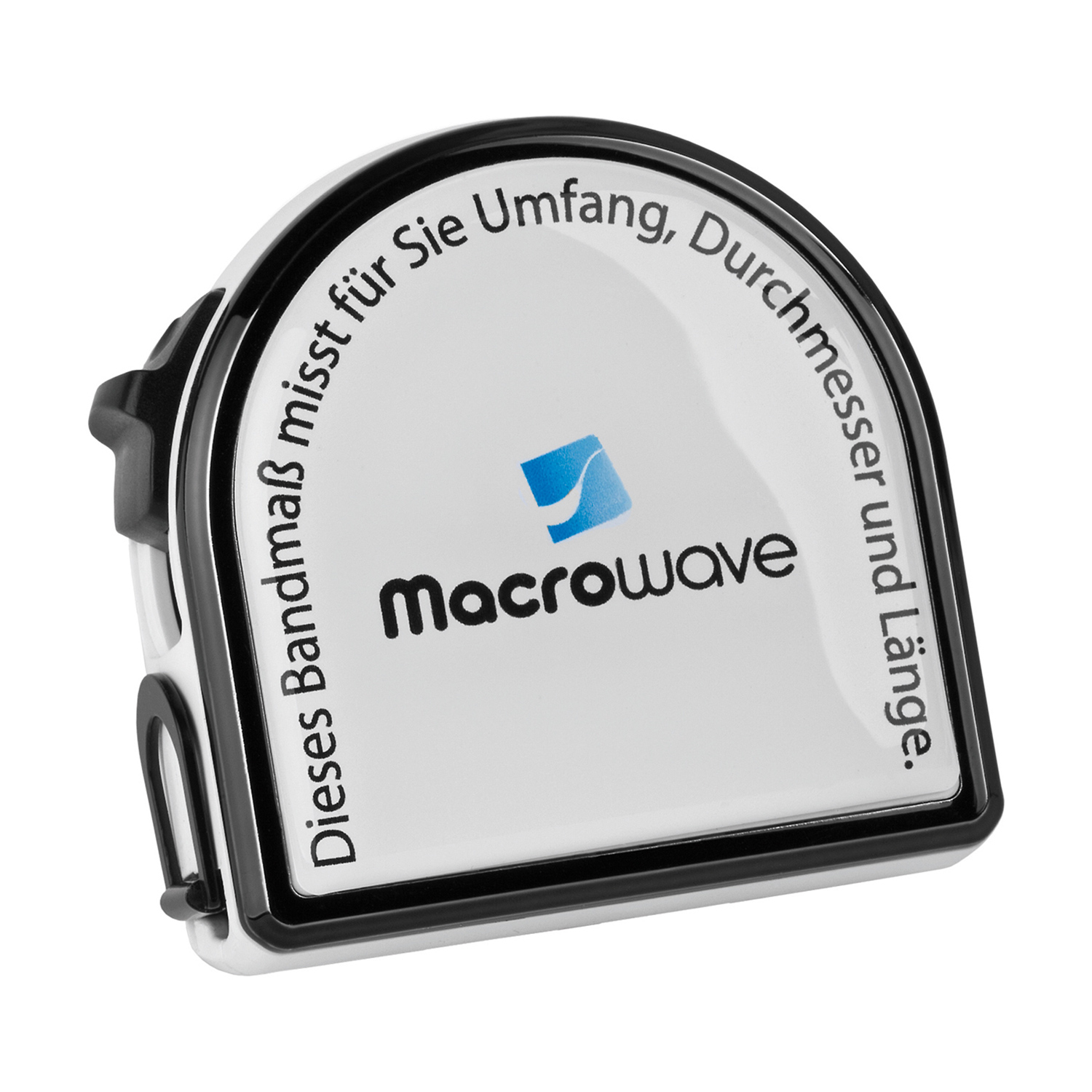 Bandmaß mit Durchmesserskala. Schlagfestes Gehäuse. Mit dyn. Bandrücklauf. Band: 3 m/13 mm, lackiert. Skalierung: cm, zweiseitig (Länge/Umfang, Durchmesser). Genauigkeit: EG -Klasse II . In schwarzer Geschenkverpackung.