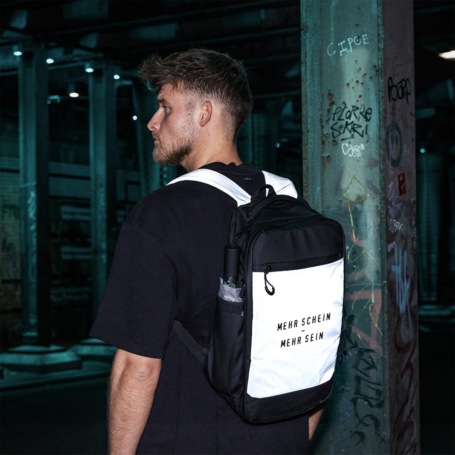 2-Wege Reißverschlusshauptfach, Gepolstertes Laptopfach bis zu 17”, 2-Wege Sekundärhauptfach mit großer Innentasche aus Mesh sowie weiterer RV-Innentasche. 2-Wege-Reißverschluss-Frontfach. Flexibele Seiten-Flaschenfächer, Trolleyschlaufe. Gepolsterte, verstellbare, reflektierende Schultergurte. Verschweißte Reißverschluss-Nähte und seitliche Verstellschnallen.