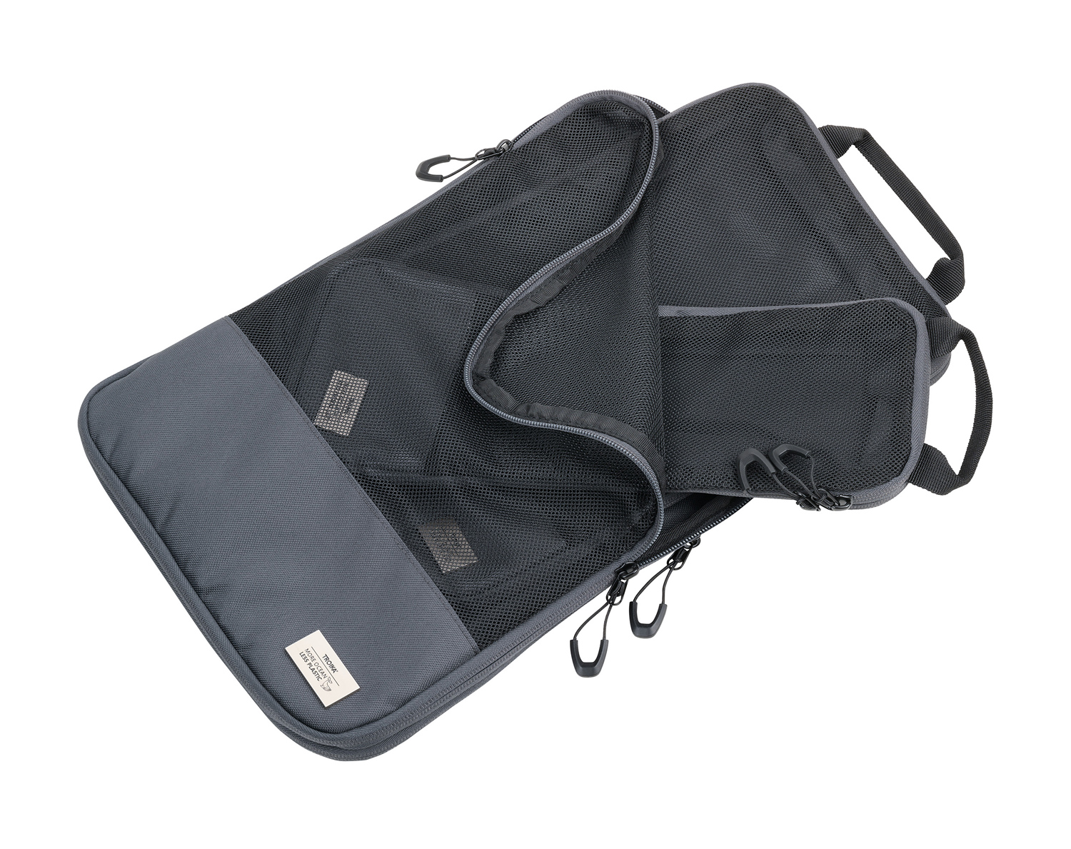 Dreiteilig für verschiedene Kleidungsstücke: Größe L für Hemden & Hosen, Größe M für Shirts und Größe S für Socken und Wäsche – für platzsparendes, geordnetes und knitterfreies Packen von Kleidung in Koffer & Rucksack. Durch Verschließen des Netzfach-Reißverschlusses wird der Inhalt vollständig komprimiert.