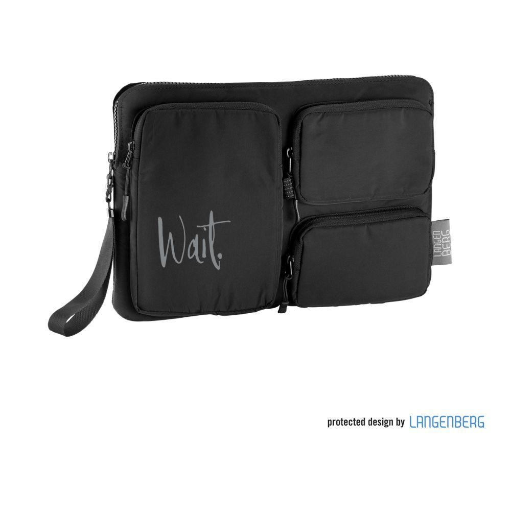 gepolstertes Reißverschlusshauptfach (passend bis 11") senkrechte Reißverschlussvortasche ca. 20 x 14 x 2 cm zwei waagrechte Reißverschlussvortaschen ca. 9,5 x 14,5 x 2 cm Volumen: ca. 2l