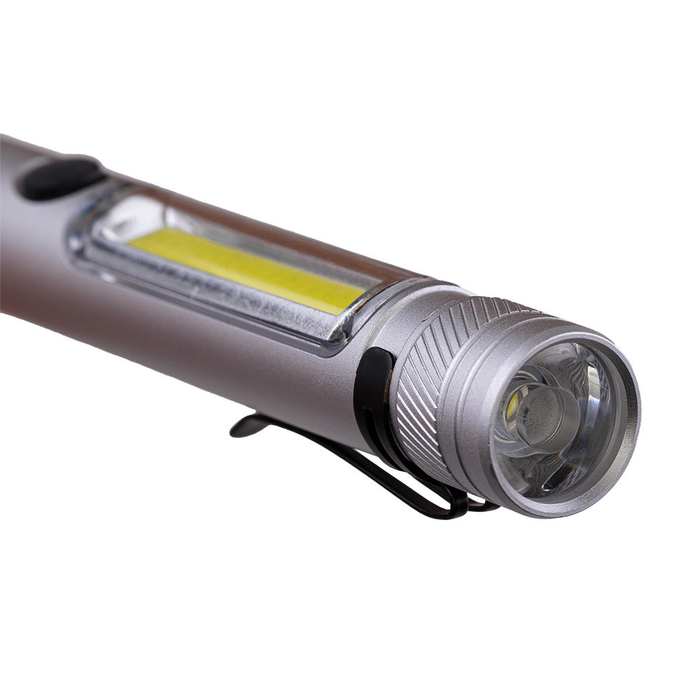 Wiederaufladbare Taschenlampe per USB / Typ C-Kabel mit 2 Leuchtfunktionen: LED Taschenlampe mit 95 Lumen COB-LED Arbeitsleuchte mit 200 Lume Material Aluminium