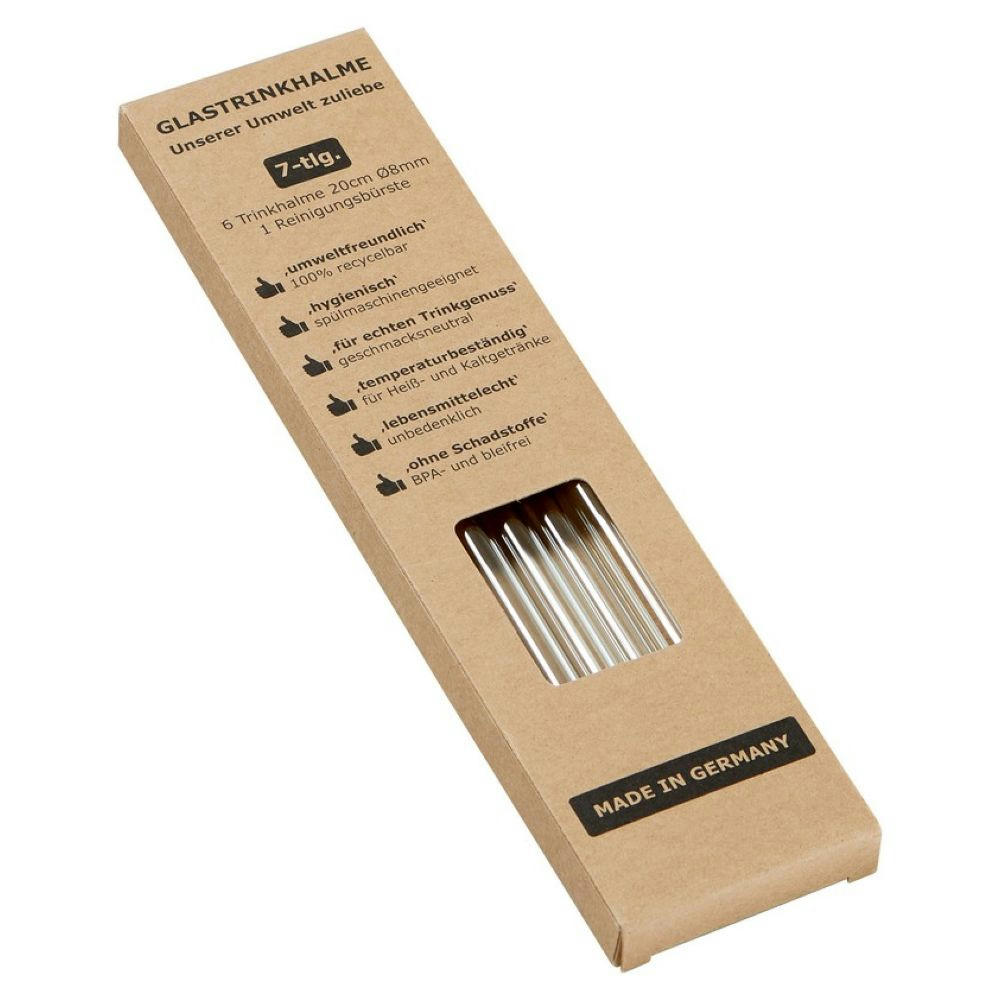 Umweltschutz beginnt im Kleinen: wiederverwendbare Trinkhalme aus Glas sind ein wichtiger Beitrag! Die Halme sind 100 % recycelbar,spülmaschinengeeignet, geschmacksneutral und für Heiß- oder Kaltgetränke gleichermaßen geeignet.