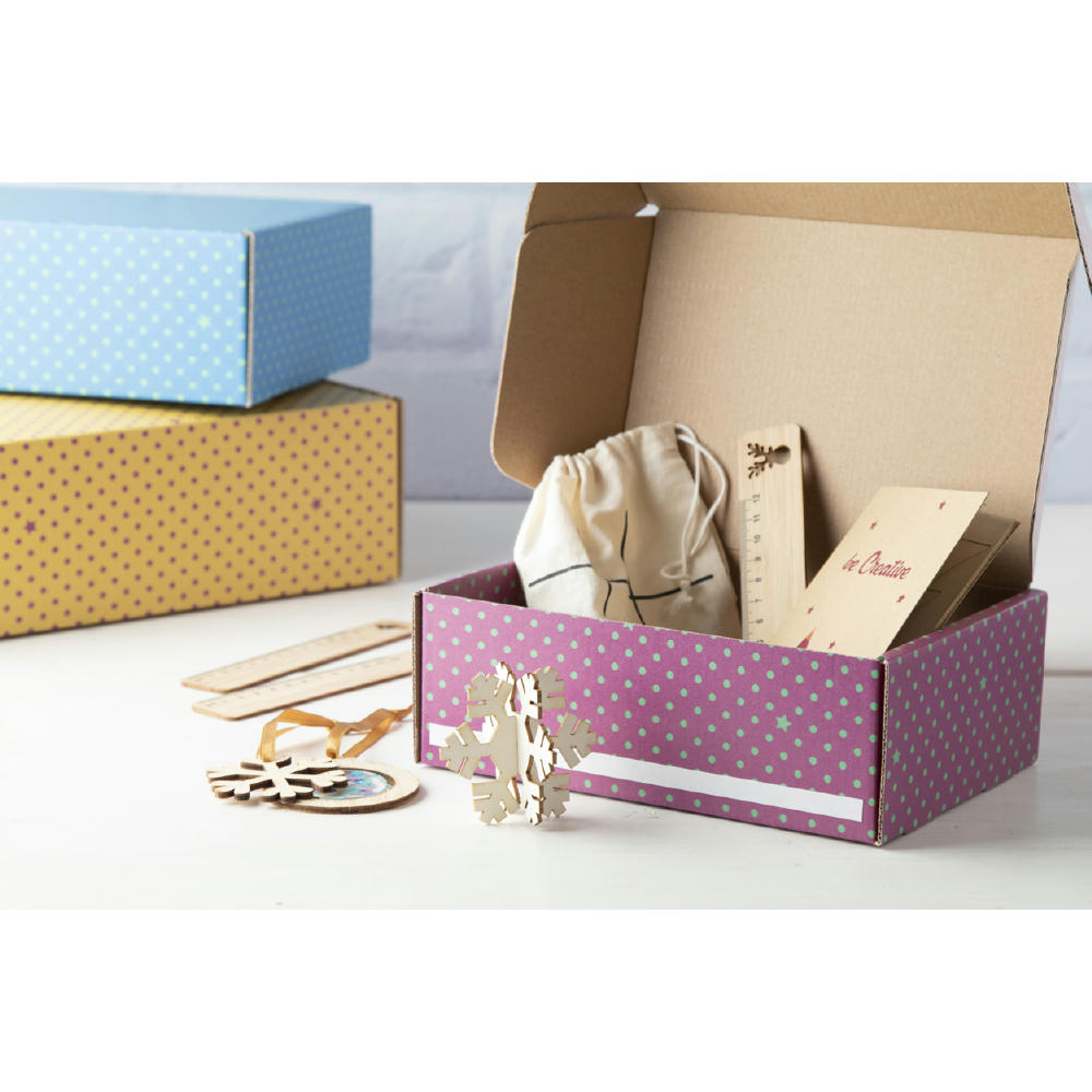 Individuelle Versandbox aus Wellpappe mit selbstklebendem Verschlussstreifen und vollfarbiger Bedruckung auf der Außenseite. Die Lieferung erfolgt flach verpackt. Preis inkl. vollflächigem 4c- Druck.