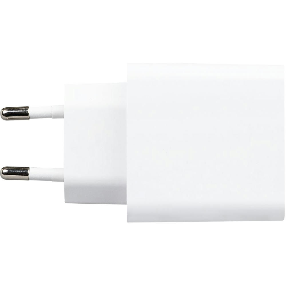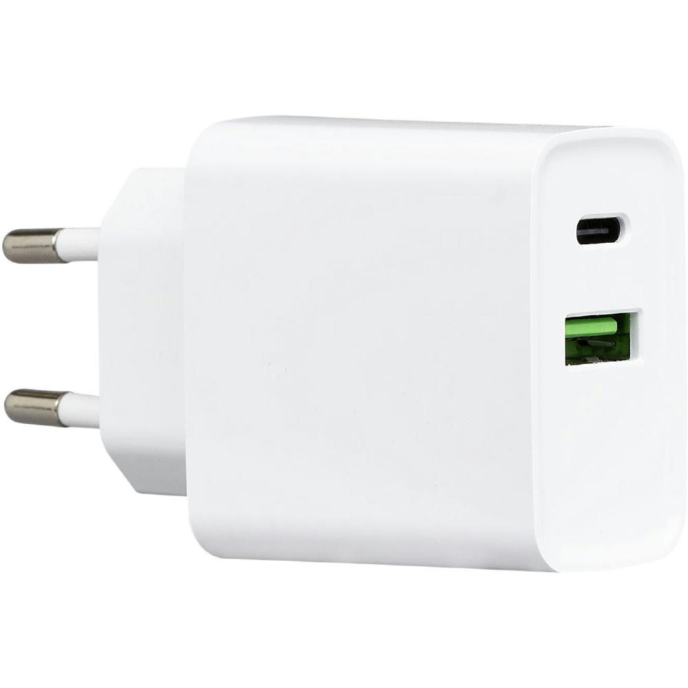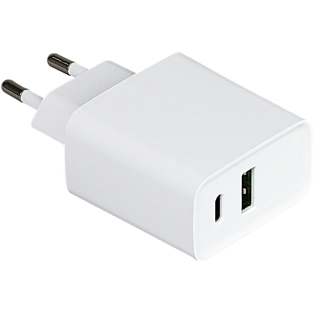 Wandladegerät mit 20 W Gesamtleistung (QC3.0 Quickcharge und PD 20 W), Input: 100–240 V, 50/60Hz 0,5A, Output USB-A: 5V/3A, 9V/2A, 12V/1,5A (18W max.), Output: Type-C 5V/3A, 9V/2,22A, 12V/1,66A (20W max.), USB-A + Type-C kombiniert: 17W max., Input: 100–240 V, 50/60Hz 0,5A, Output USB-A: 5V/3A, 9V/2A, 12V/1,66A (20W max.), Output: Type-C 5V/3A, 9V/2,22A, 12V/1,66A (20W max.), USB-A + Type-C kombiniert: 17W max.