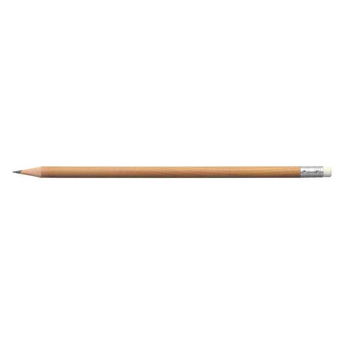 Bleistift aus naturfarbenem Holz mit Klarlack überzogen. Offenes Stiftende, rund, gespitzt. Härtegrad: HB, bruchfeste Mine durch Spezialverleimung. Preis inkl. 1c-Druck.