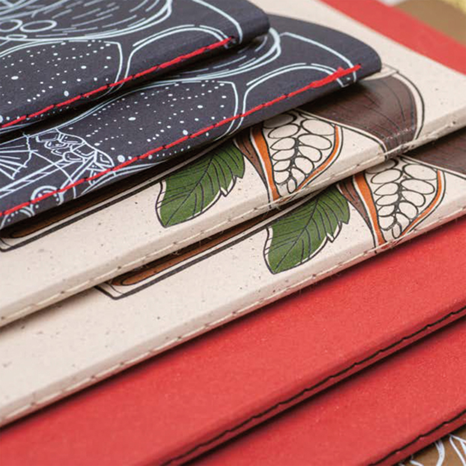 Die mit Faden genähten Notizhefte sind eine einzigartige und minimalistische Wahl für umweltbewusste Unternehmen und Marken. Der weiche Umschlag wird aus zertifiziertem "Organic Spirit"-Papier hergestellt, in dem ca. 15% der Zellulosemasse durch Abfälle pflanzlichen Ursprungs ersetzt werden. Zusätzlich enthält das Papier 40% Zellulose aus recyceltem Verpackungsmaterial und ist vollständig biologisch abbaubar und recycelbar. Die Herstellung der Organic Spirit Notizhefte basiert auf Nebenprodukten aus der Verarbeitung von Pflanzenabfällen wie Lavendel, Kaffee, Kirschen und Oliven, was jedem Produkt eine individuelle, natürliche Farbgebung verleiht. Zahlreiche Individualisierungsoptionen ermöglichen es Ihnen, Ihr nachhaltiges Notizheft frei nach Ihren Wünschen zu gestalten. Individualisierungsmöglichkeiten: Format, Einbandfarbe (Lavendel, Kaffee, Olive u.v.m), Papierart, Fadenfarbe, Werbeanbringung (Druck, Tief- oder Hochprägung).