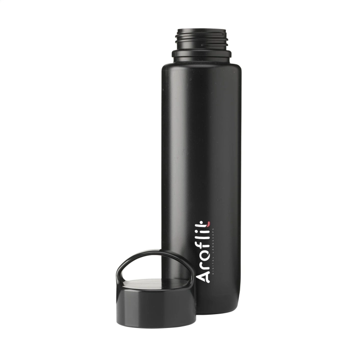 Umweltfreundliche, schlanke und leichte Wasserflasche mit Schraubverschluss. Diese Wasserflasche besteht zu 98% aus Bio-HDPE. Dieses Material wird aus den Abfällen der Zuckerrohrpflanze hergestellt. Mit überwiegend erneuerbaren Energien hergestellt.