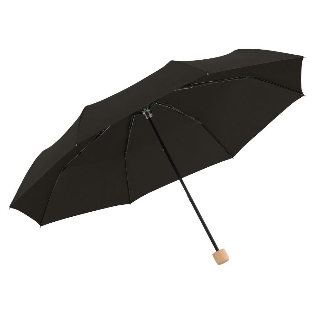 Nachhaltiger, PFC-freier, manueller Taschenschirm mit rPET-Bespannung und einem zertifiziertem Holzgriff aus nachhaltiger Forstwirtschaft, zu attraktiven Konditionen.