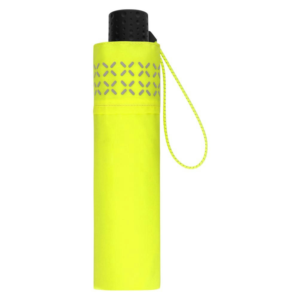 Fluoreszierender, kompakter Taschenschirm mit Reflektoren, ideal auch für Kinder. Dunkel, neblig und regnerisch - genau and diesen Tagen sorgt Safety für die nötige Sichtbarkeit bei jeder Tageszeit. Sicherheit für die ganze Familie: die Safety Regenschirmserie bietet mit reflektierenden Elementen und Tagesleuchtfarben eine besonders gute Sichtbarkeit. Mit knalligen Neon-Farben in angesagten Farbnuancen ist ein Auffallen garantiert.
