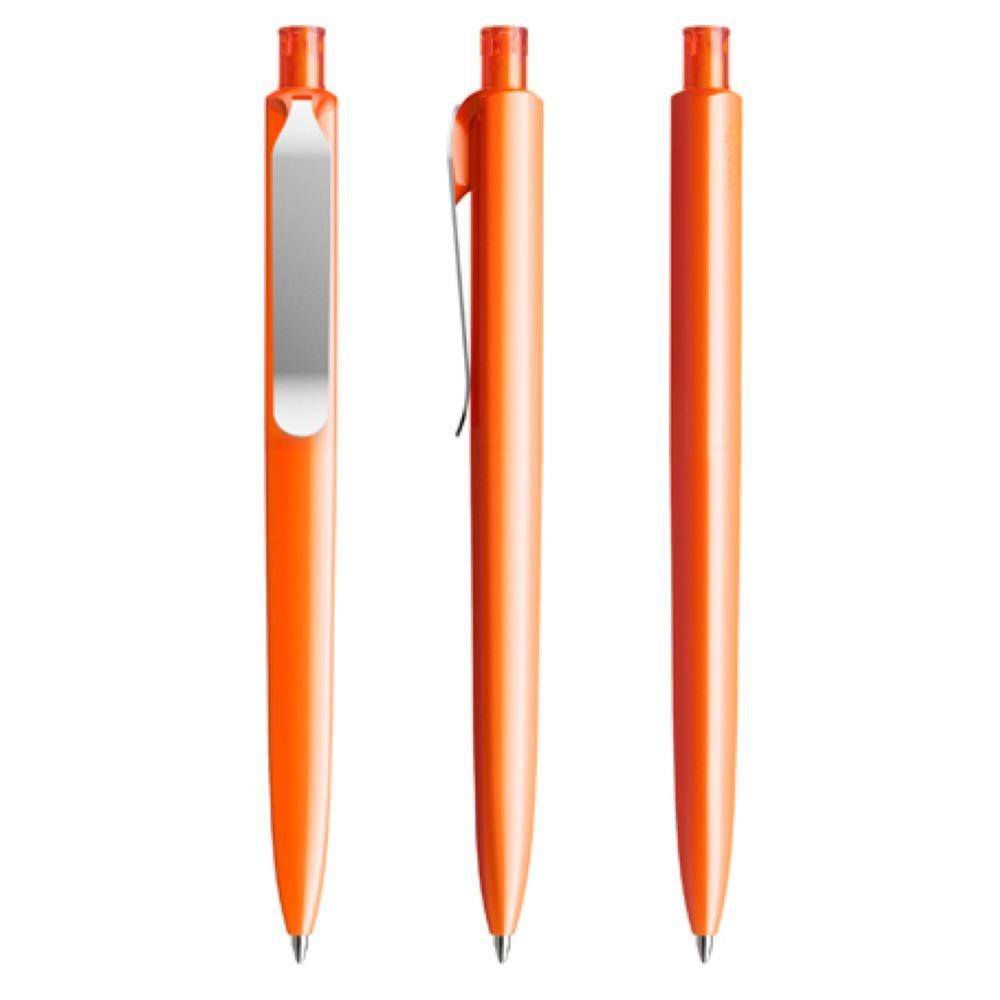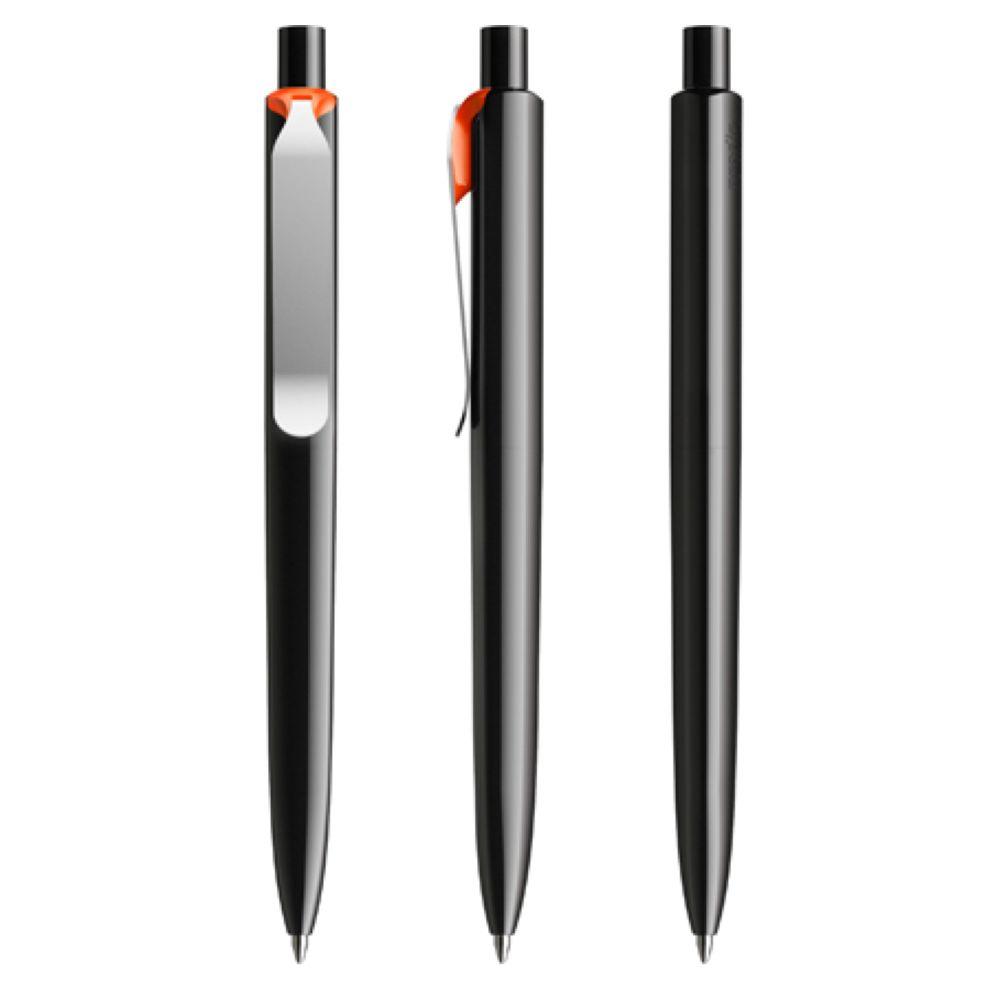 Die Ikone eines klassischen Schreibgerätes. Wertige Clip-Druckknopf-Kombinationen aus Metall machen den DS8 Metall-Clip noch vielseitiger. Ein ausgewogener Material-Mix aus Metall und Kunststoff, der Marken gekonnt in Szene setzt. Metall-Clips in verschiedenen Finishs verleihen ihm einen luxuriösen Touch. Die farblich absetzbaren Clip-Holder bieten eine Möglichkeit, neben der Primärfarbe auch die Zweitfarbe der Corporate Identity harmonisch umzusetzen. In der Ausführung mit vollfarben poliertem Gehäuse (PSP) lieferbar in vier Standardfarben, hergestellt mit einem Rezyklatanteil von 100% (Schwarz und Weiß) oder 50% (alle anderen Farben), gekennzeichnet mit dem internationalen Recycling-Symbol. Sondergehäusefarben ab 5.000 Stück. Fünf Druckflächen für Werbeanbringungen stehen zur Verfügung. Die Standardausführung ist mit Silber satiniertem Clip und poliertem oder satiniertem Metalldruckknopf ausgestattet. Alternativ stehen satinierte Metallclips und Metalldruckknöpfe in galvanisiertem Schwarz oder Graphit zur Auswahl. Ausgestattet mit der umweltfreundlichen auswechselbaren FLOATING BALL® lead free-Großraummine 1.0, Schreiblänge 5.000 m, Schreibfarbe Blau oder Schwarz.