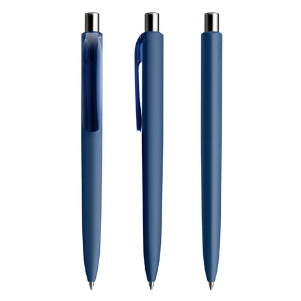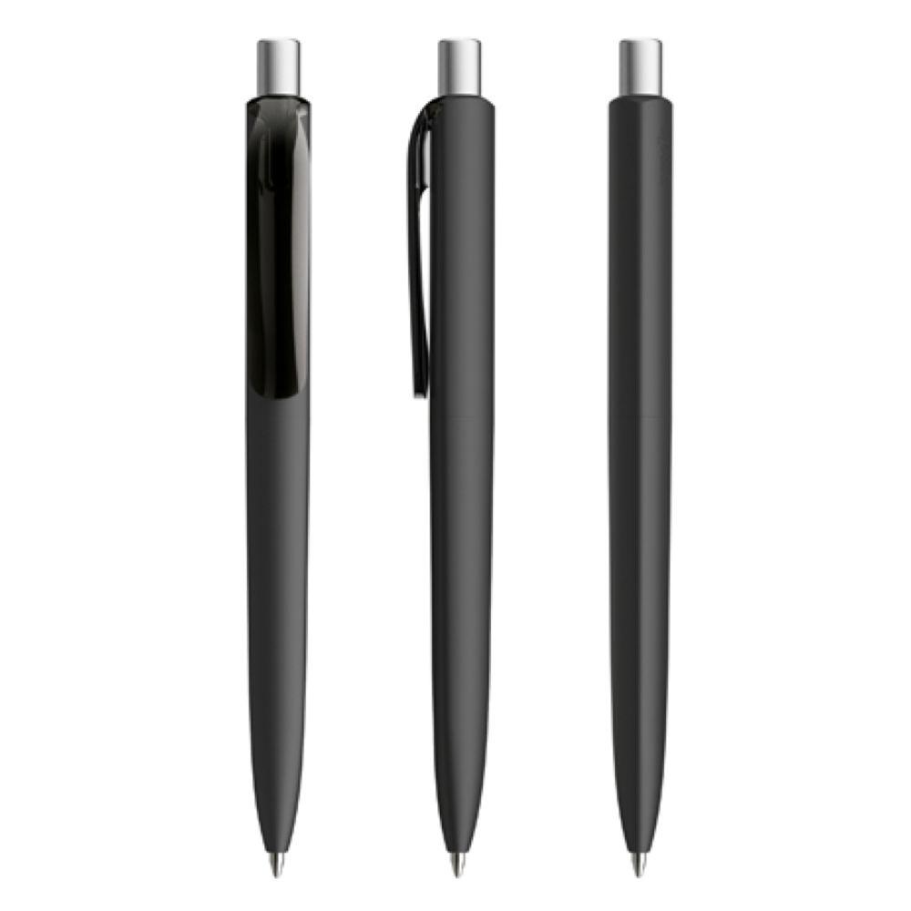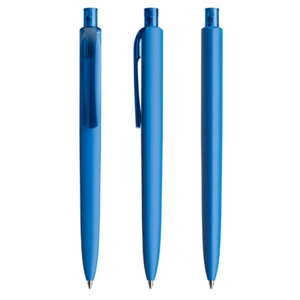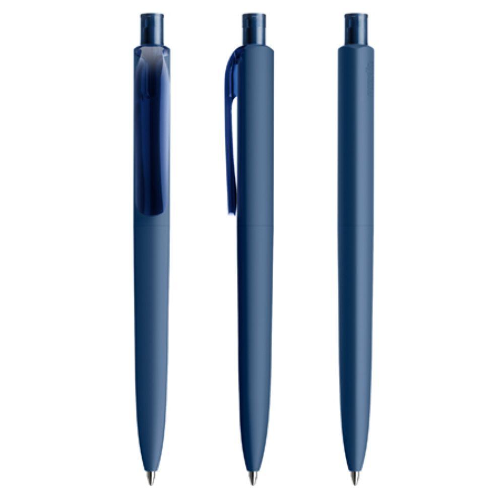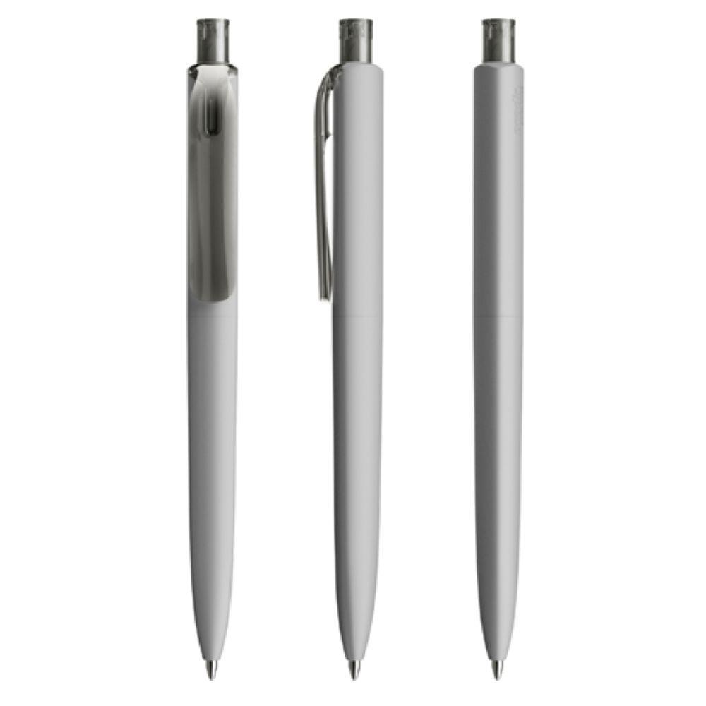 Die Ikone eines klassischen Schreibgerätes. Die zeitlose Interpretation der Dreiecksform, reduziert auf das Wesentliche und funktional bis ins kleinste Detail. Dem DS8 gelingt die Symbiose von exzellentem Schreibkomfort und werthaltiger Kommunikation. Seine zahlreichen Personalisierungsoptionen, Oberflächen, Farben und Materialien machen ihn zu einem vielseitig einsetzbaren Markenbotschafter. In der Ausführung mit Schaft in Soft Touch-Oberfläche (PRR) lieferbar in zehn Standardfarben, hergestellt mit einem Rezyklatanteil von 100% (Schwarz) oder 50% (alle anderen Farben), gekennzeichnet mit dem internationalen Recycling-Symbol. Sondergehäusefarben ab 5.000 Stück. Fünf Druckflächen für Werbeanbringungen stehen zur Verfügung. Clip und Druckknopf sind in transparenter Oberfläche. Polierter oder satinierter Metalldruckknopf als Option. Ausgestattet mit der umweltfreundlichen auswechselbaren FLOATING BALL® lead free-Großraummine 1.0, Schreiblänge 5.000 m, Schreibfarbe Blau oder Schwarz.