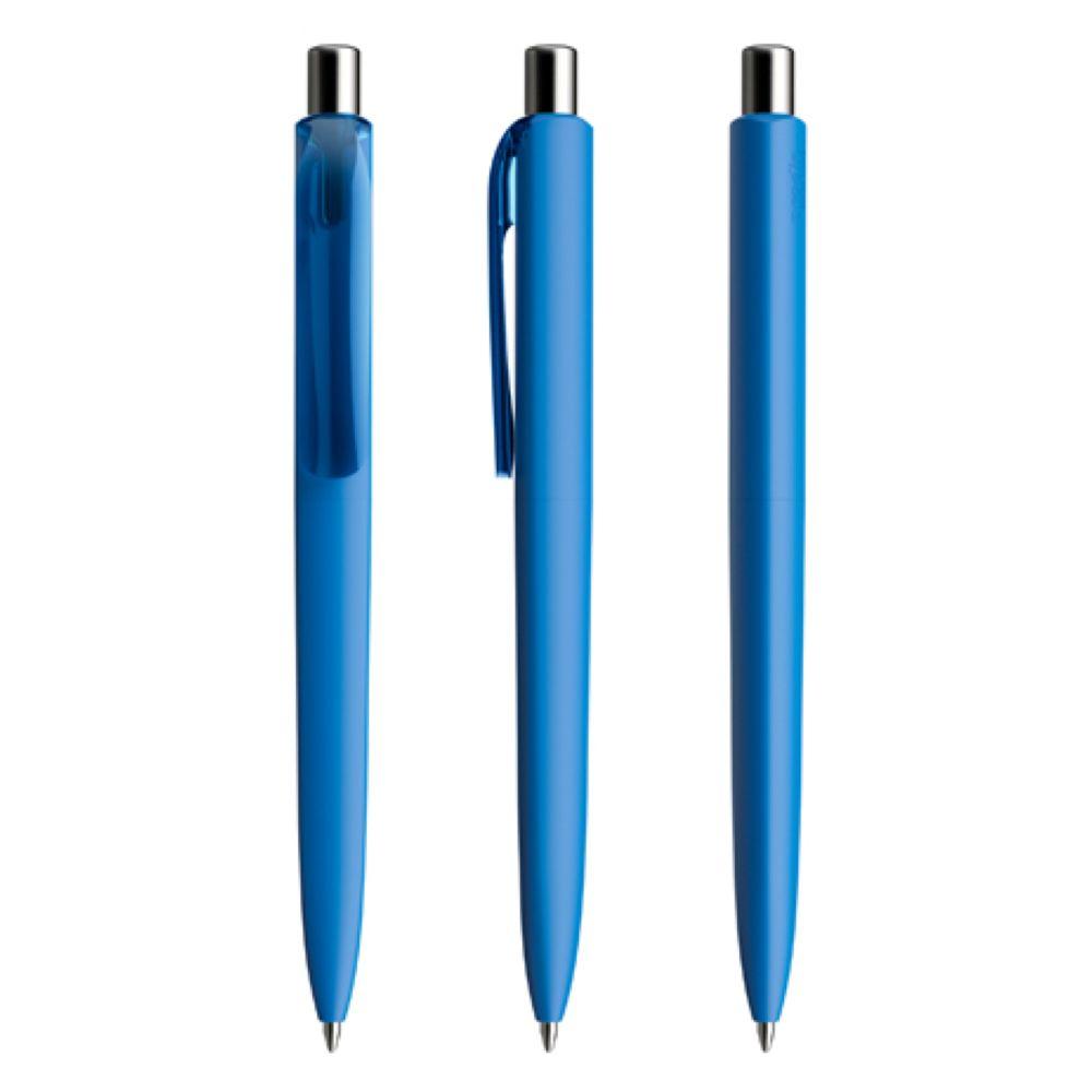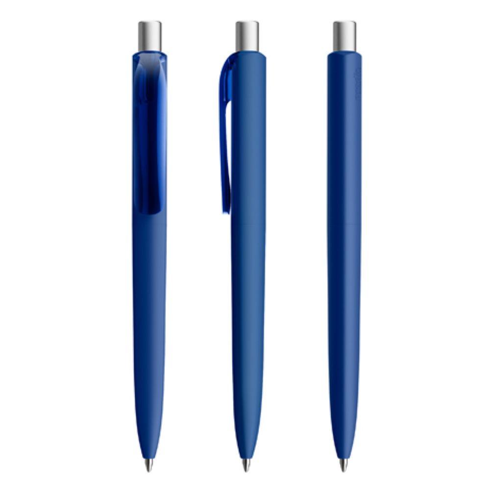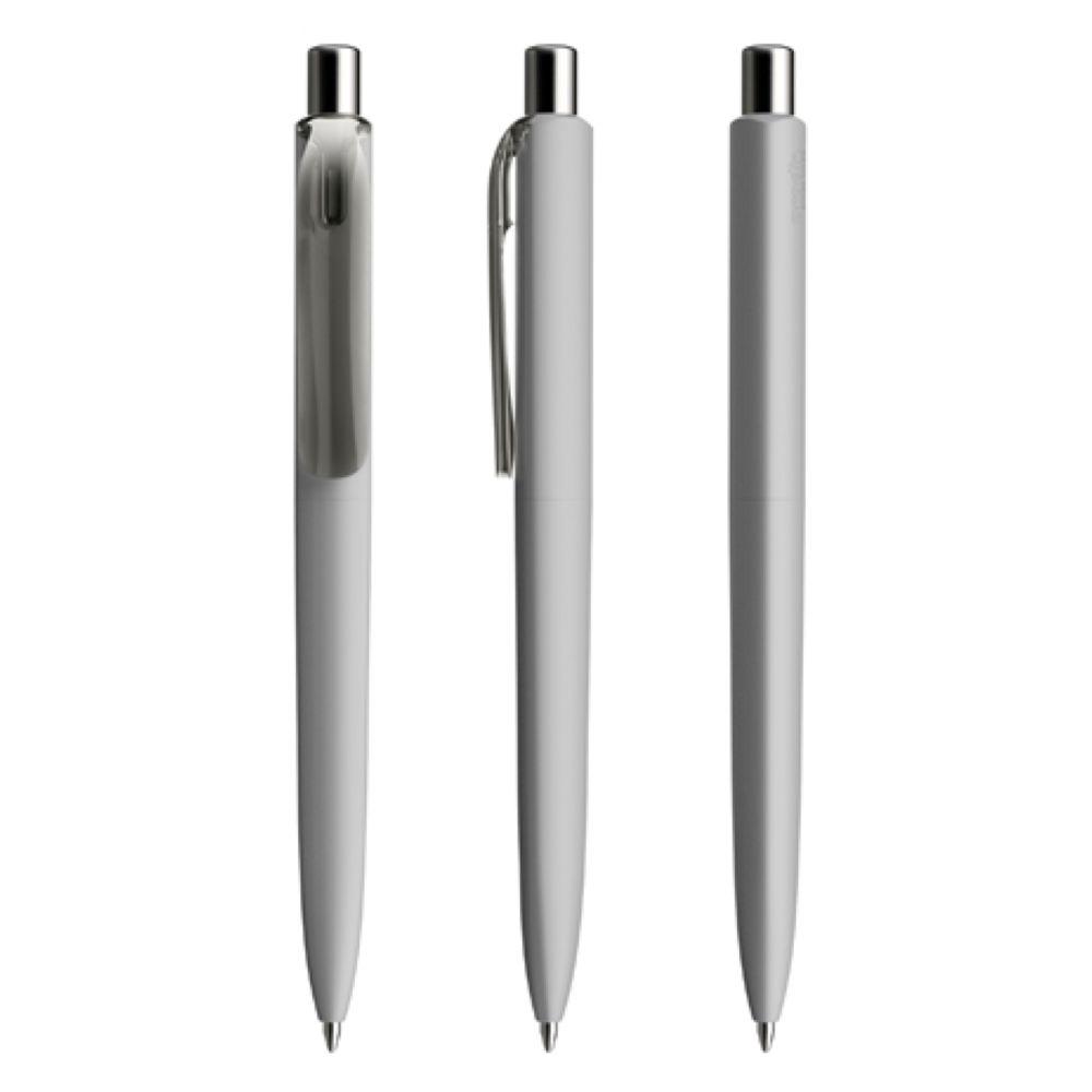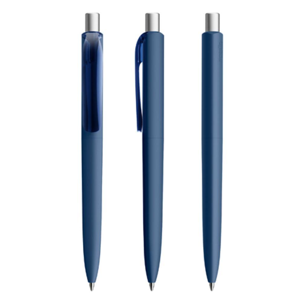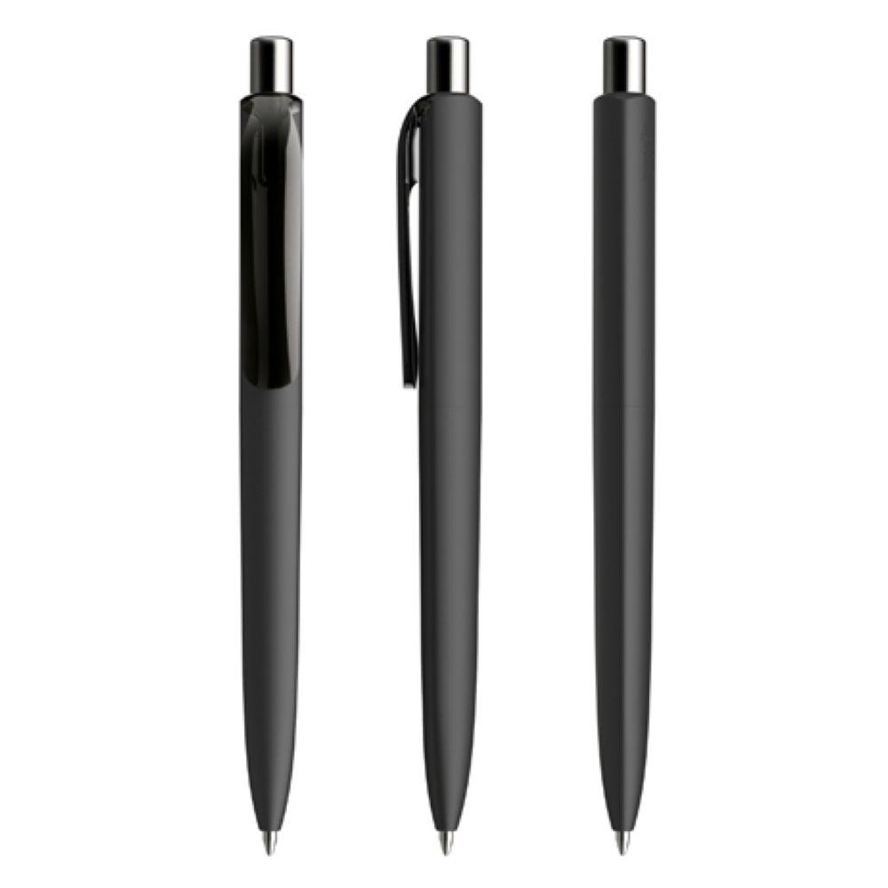Die Ikone eines klassischen Schreibgerätes. Die zeitlose Interpretation der Dreiecksform, reduziert auf das Wesentliche und funktional bis ins kleinste Detail. Dem DS8 gelingt die Symbiose von exzellentem Schreibkomfort und werthaltiger Kommunikation. Seine zahlreichen Personalisierungsoptionen, Oberflächen, Farben und Materialien machen ihn zu einem vielseitig einsetzbaren Markenbotschafter. In der Ausführung mit Schaft in Soft Touch-Oberfläche (PRR) lieferbar in zehn Standardfarben, hergestellt mit einem Rezyklatanteil von 100% (Schwarz) oder 50% (alle anderen Farben), gekennzeichnet mit dem internationalen Recycling-Symbol. Sondergehäusefarben ab 5.000 Stück. Fünf Druckflächen für Werbeanbringungen stehen zur Verfügung. Clip und Druckknopf sind in transparenter Oberfläche. Polierter oder satinierter Metalldruckknopf als Option. Ausgestattet mit der umweltfreundlichen auswechselbaren FLOATING BALL® lead free-Großraummine 1.0, Schreiblänge 5.000 m, Schreibfarbe Blau oder Schwarz.