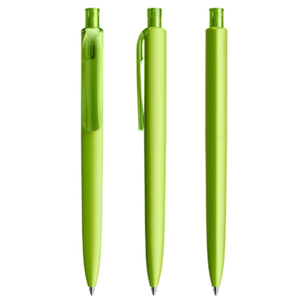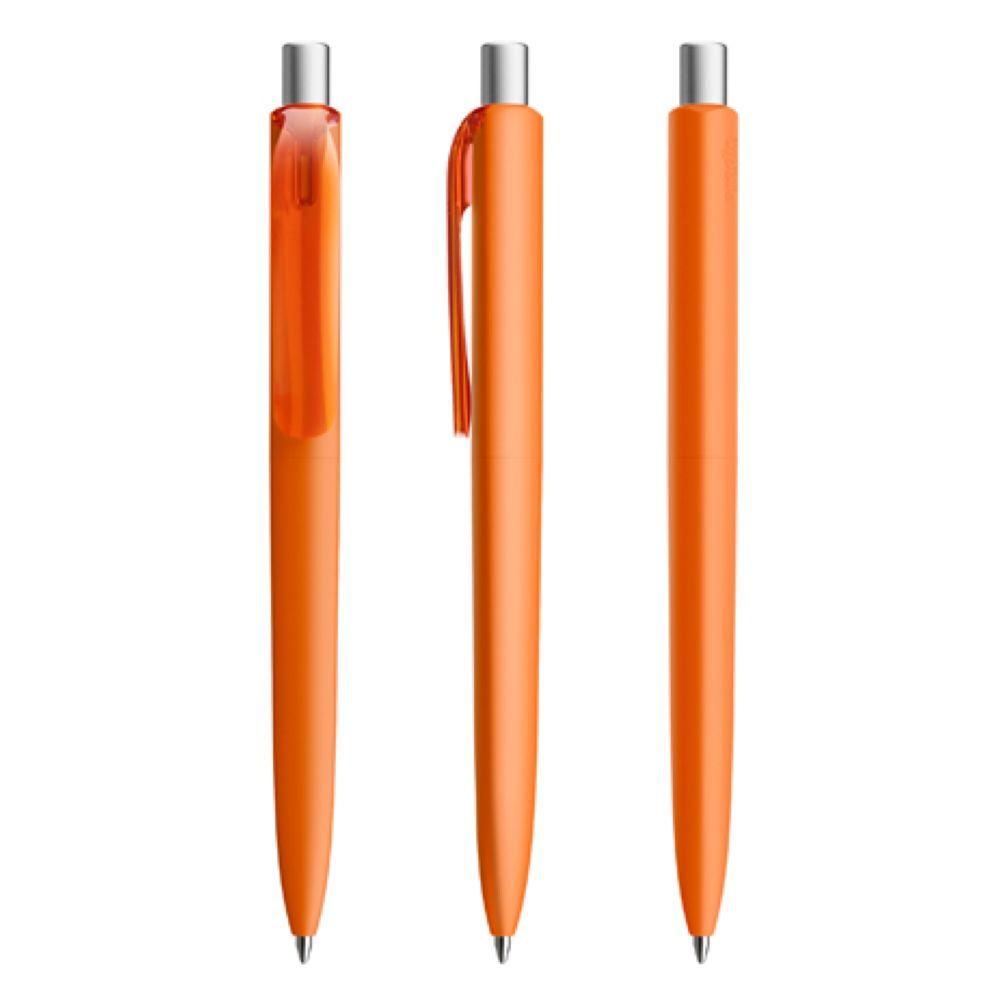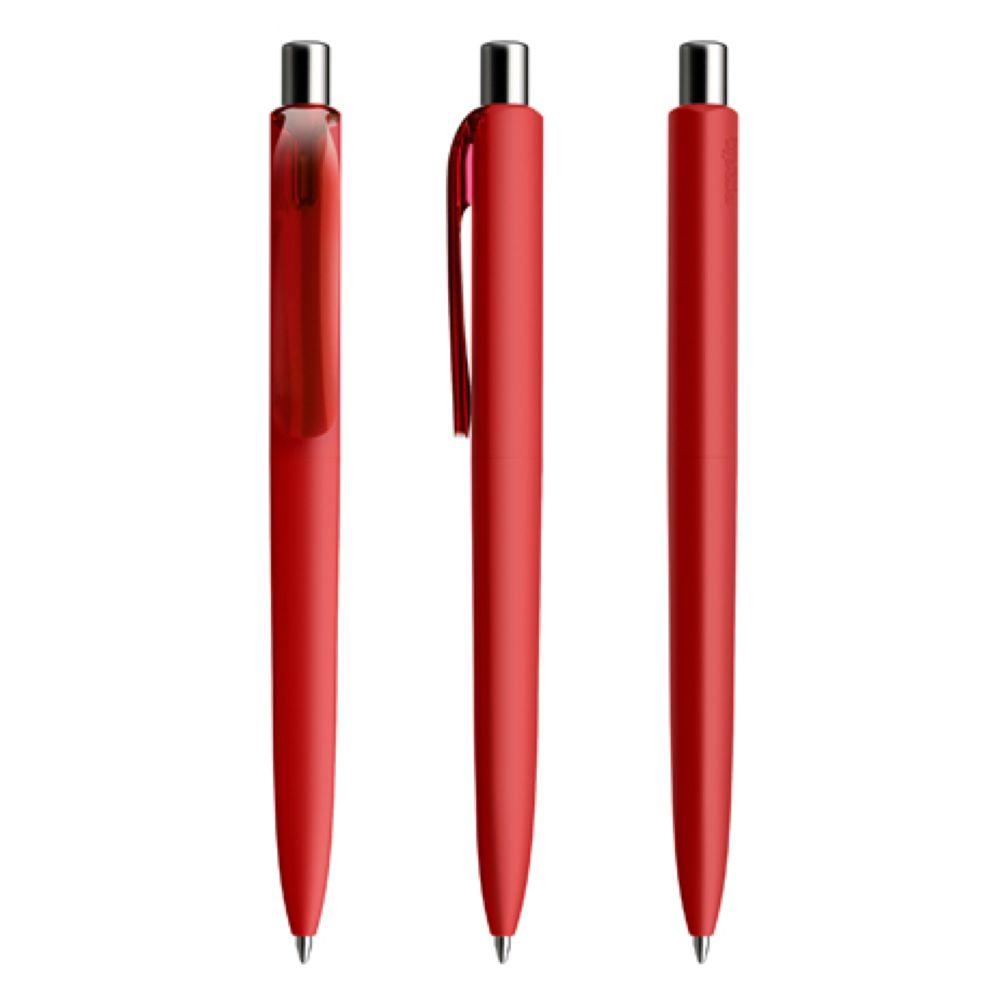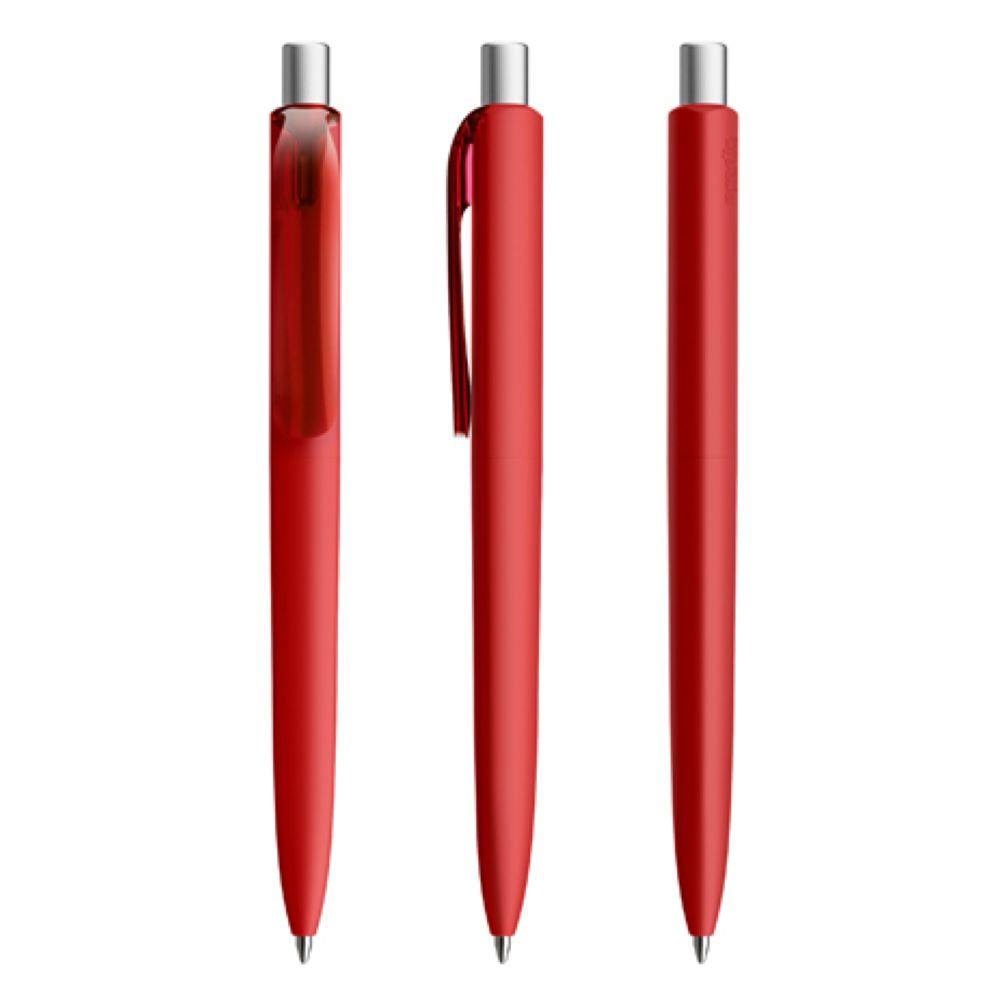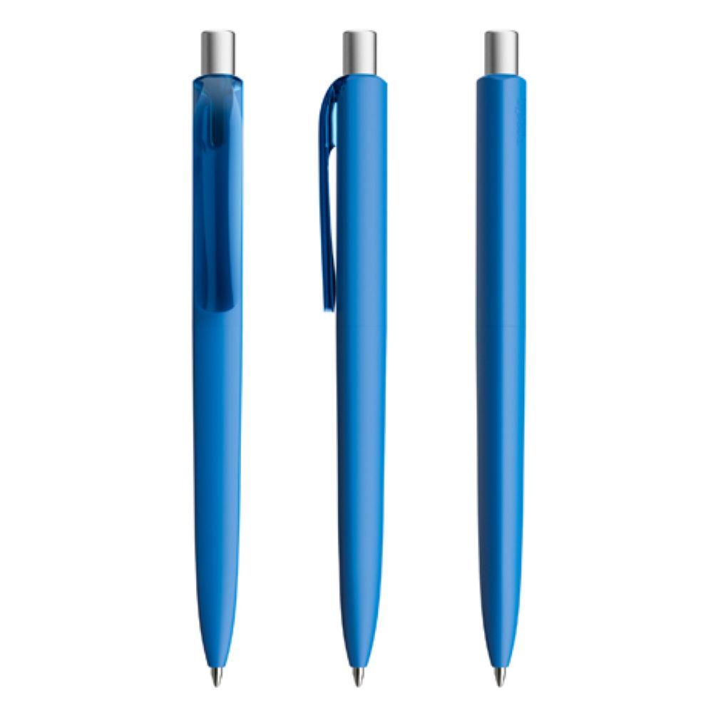 Die Ikone eines klassischen Schreibgerätes. Die zeitlose Interpretation der Dreiecksform, reduziert auf das Wesentliche und funktional bis ins kleinste Detail. Dem DS8 gelingt die Symbiose von exzellentem Schreibkomfort und werthaltiger Kommunikation. Seine zahlreichen Personalisierungsoptionen, Oberflächen, Farben und Materialien machen ihn zu einem vielseitig einsetzbaren Markenbotschafter. In der Ausführung mit Schaft in Soft Touch-Oberfläche (PRR) lieferbar in zehn Standardfarben, hergestellt mit einem Rezyklatanteil von 100% (Schwarz) oder 50% (alle anderen Farben), gekennzeichnet mit dem internationalen Recycling-Symbol. Sondergehäusefarben ab 5.000 Stück. Fünf Druckflächen für Werbeanbringungen stehen zur Verfügung. Clip und Druckknopf sind in transparenter Oberfläche. Polierter oder satinierter Metalldruckknopf als Option. Ausgestattet mit der umweltfreundlichen auswechselbaren FLOATING BALL® lead free-Großraummine 1.0, Schreiblänge 5.000 m, Schreibfarbe Blau oder Schwarz.