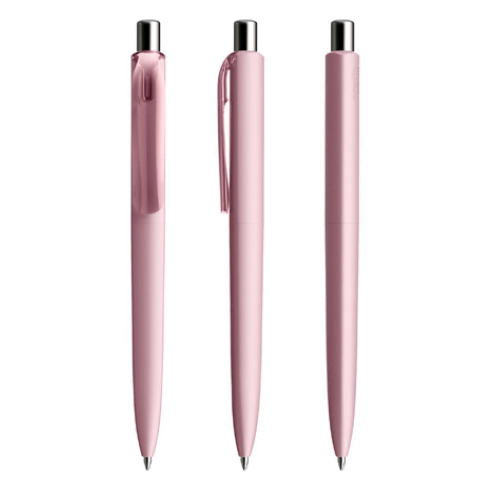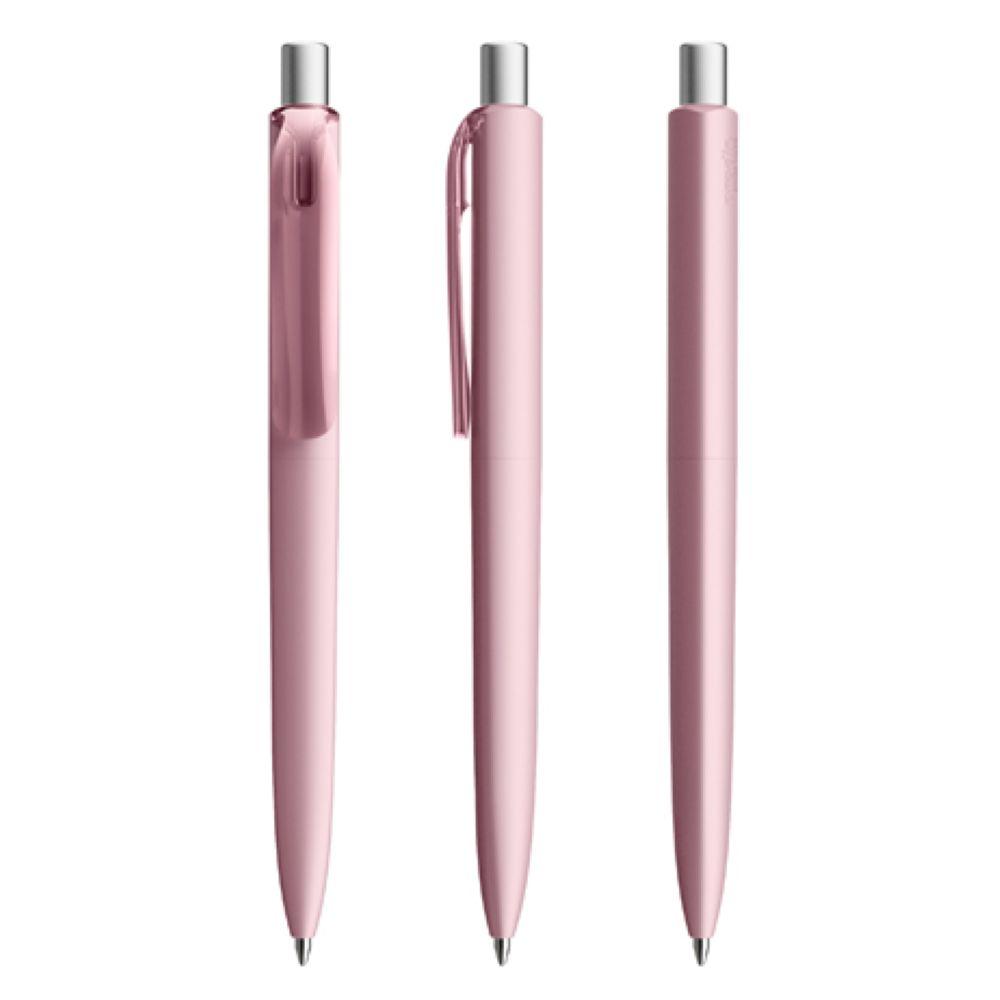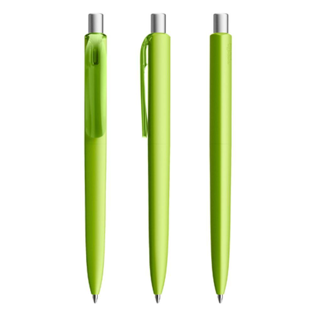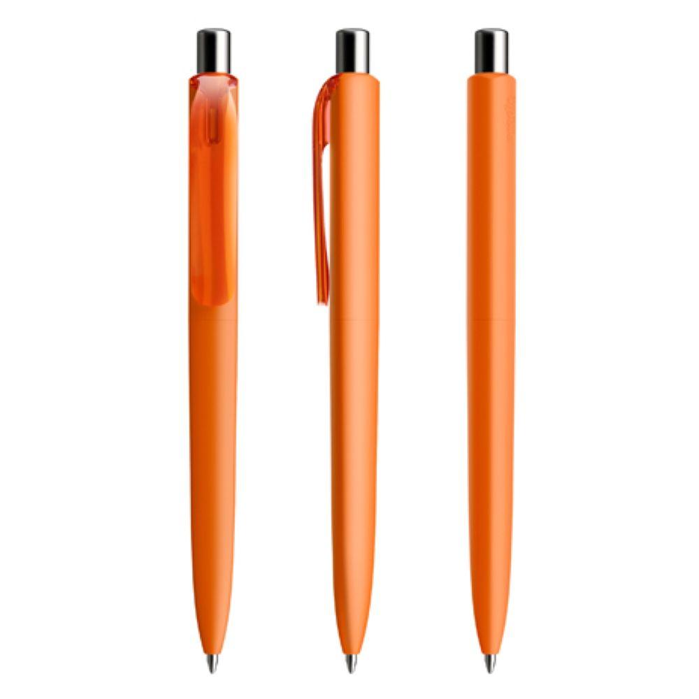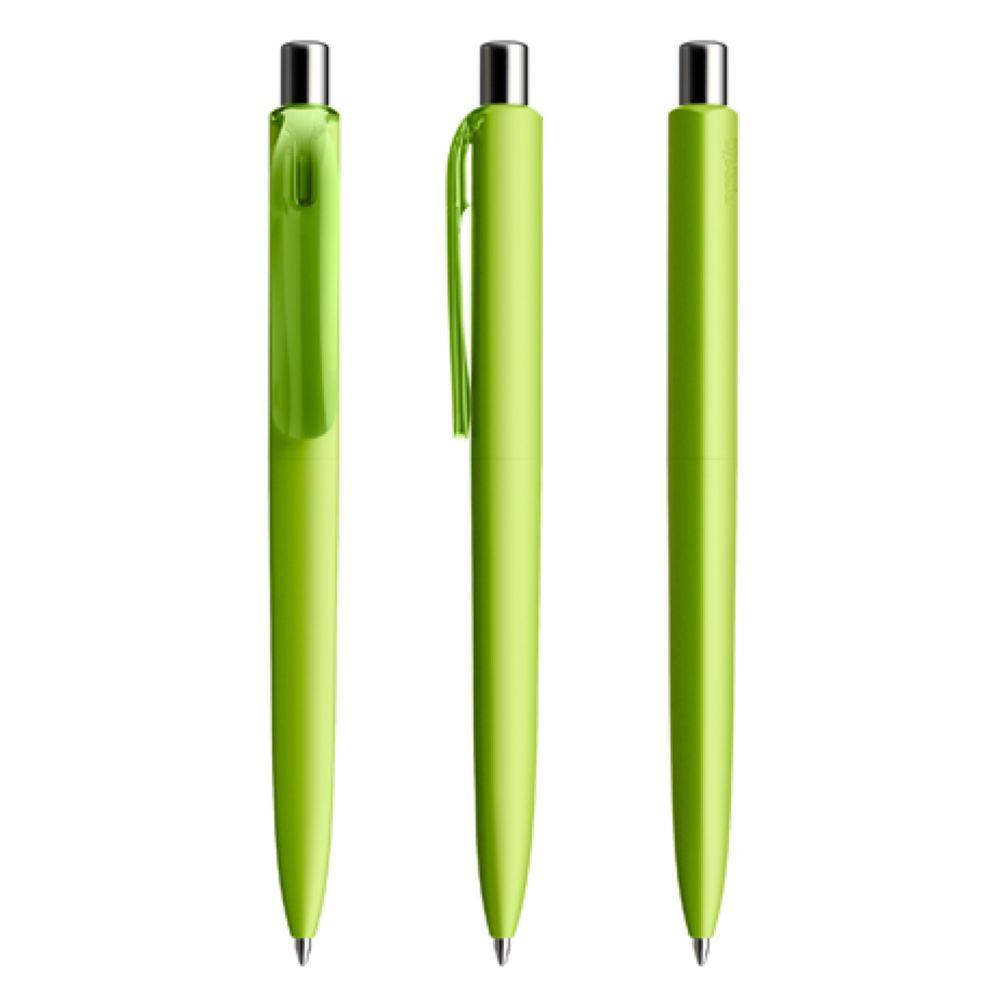 Die Ikone eines klassischen Schreibgerätes. Die zeitlose Interpretation der Dreiecksform, reduziert auf das Wesentliche und funktional bis ins kleinste Detail. Dem DS8 gelingt die Symbiose von exzellentem Schreibkomfort und werthaltiger Kommunikation. Seine zahlreichen Personalisierungsoptionen, Oberflächen, Farben und Materialien machen ihn zu einem vielseitig einsetzbaren Markenbotschafter. In der Ausführung mit Schaft in Soft Touch-Oberfläche (PRR) lieferbar in zehn Standardfarben, hergestellt mit einem Rezyklatanteil von 100% (Schwarz) oder 50% (alle anderen Farben), gekennzeichnet mit dem internationalen Recycling-Symbol. Sondergehäusefarben ab 5.000 Stück. Fünf Druckflächen für Werbeanbringungen stehen zur Verfügung. Clip und Druckknopf sind in transparenter Oberfläche. Polierter oder satinierter Metalldruckknopf als Option. Ausgestattet mit der umweltfreundlichen auswechselbaren FLOATING BALL® lead free-Großraummine 1.0, Schreiblänge 5.000 m, Schreibfarbe Blau oder Schwarz.
