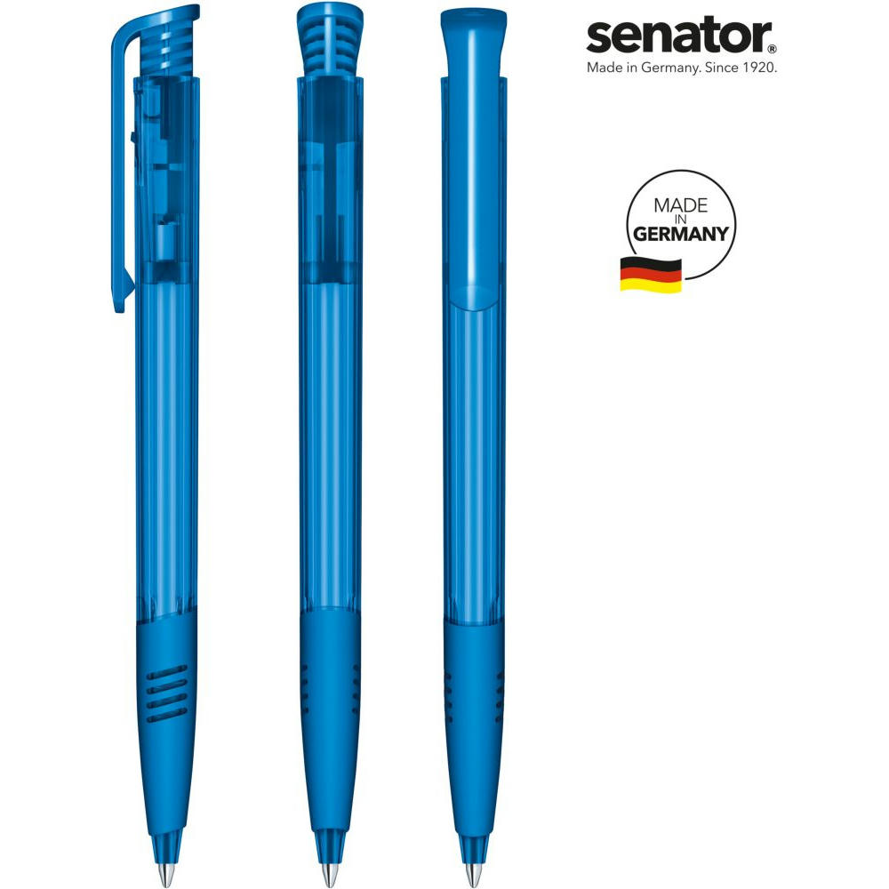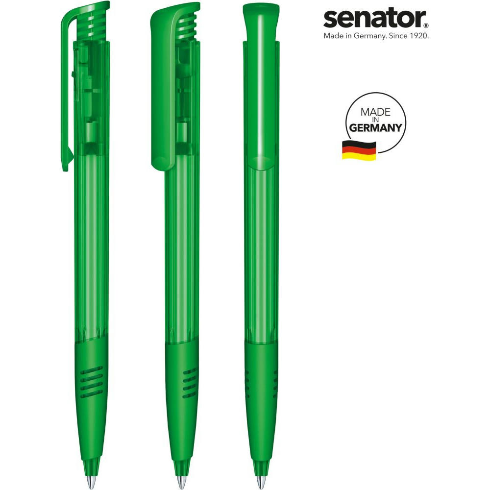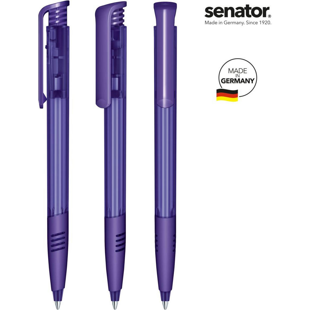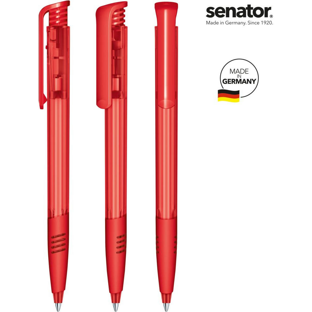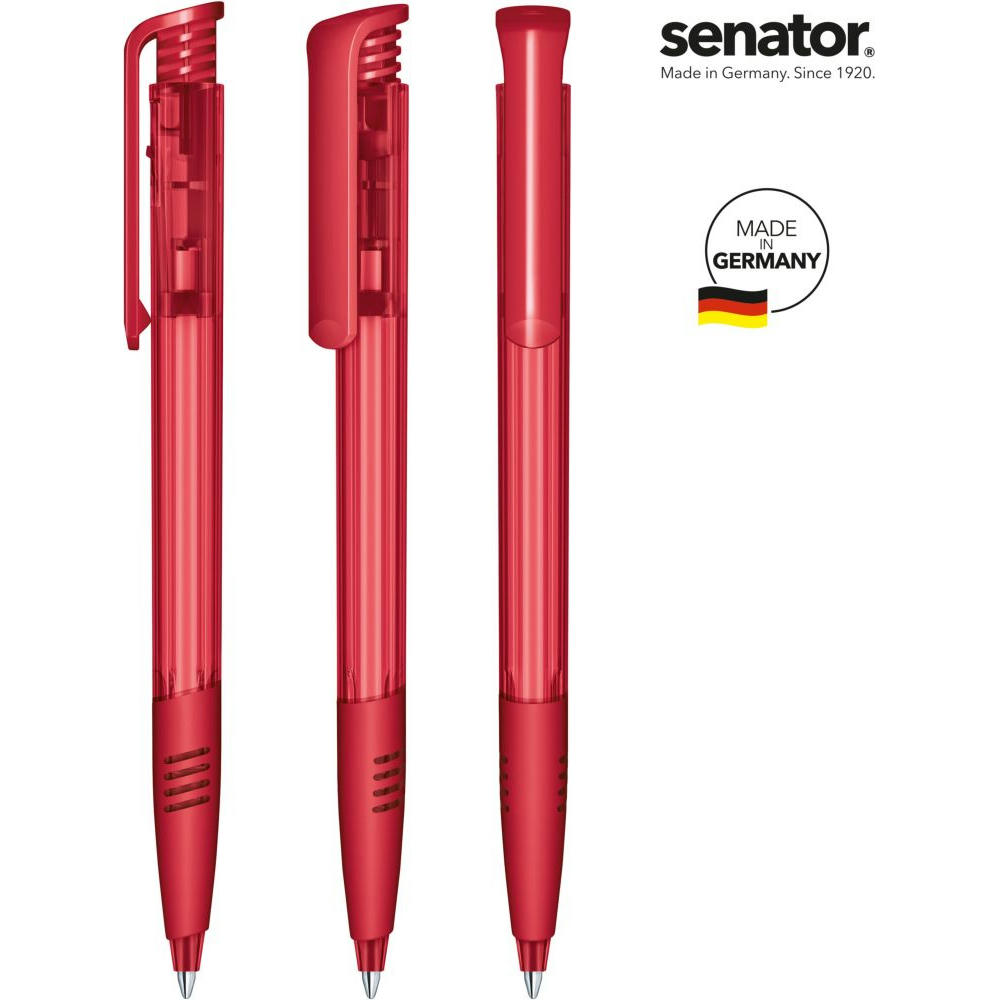Druckkugelschreiber „senator® Super Hit Clear SG“ – klassisch und beliebt. - Der „Super Hit Clear SG“ kombiniert eine glänzend transparente Oberfläche mit einem glänzend opaken Clip und einer farbigen Softgriffzone. Er besteht aus nur zwei Kunststoffteilen mit spezieller Mechanik und überzeugt durch einfache Handhabung und verlässliche Qualität. - Mit der senator® X20 Mine bietet er bis zu 2.000 Meter Schreiblänge – präzise und flüssig. - Der Kugelschreiber ist Made in Germany und steht für Qualität, Beliebtheit und bewährte Funktion.