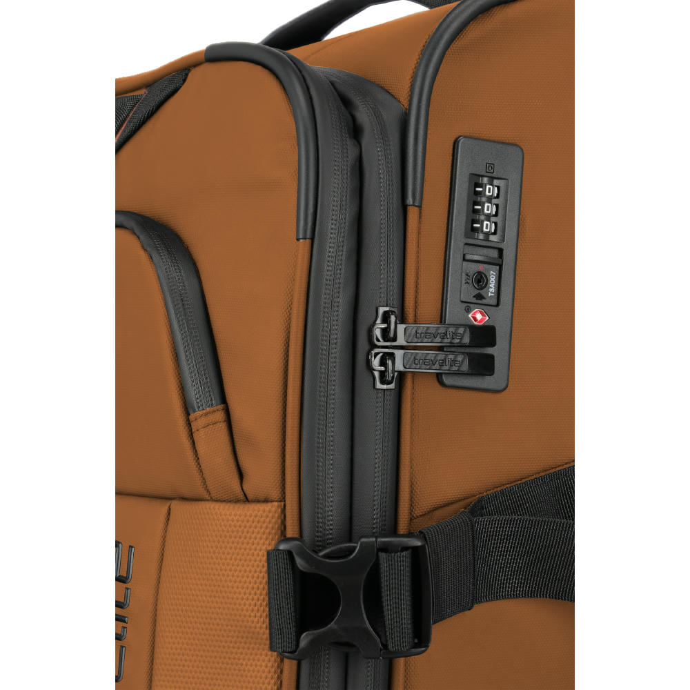 Details und Funktionen: - Aus wasserabweisendem Planenmaterial - Integriertes TSA Kombinationsschloss - Hemdenfach - Packgurte - Zwei Frontgriffe - Erweiterbar